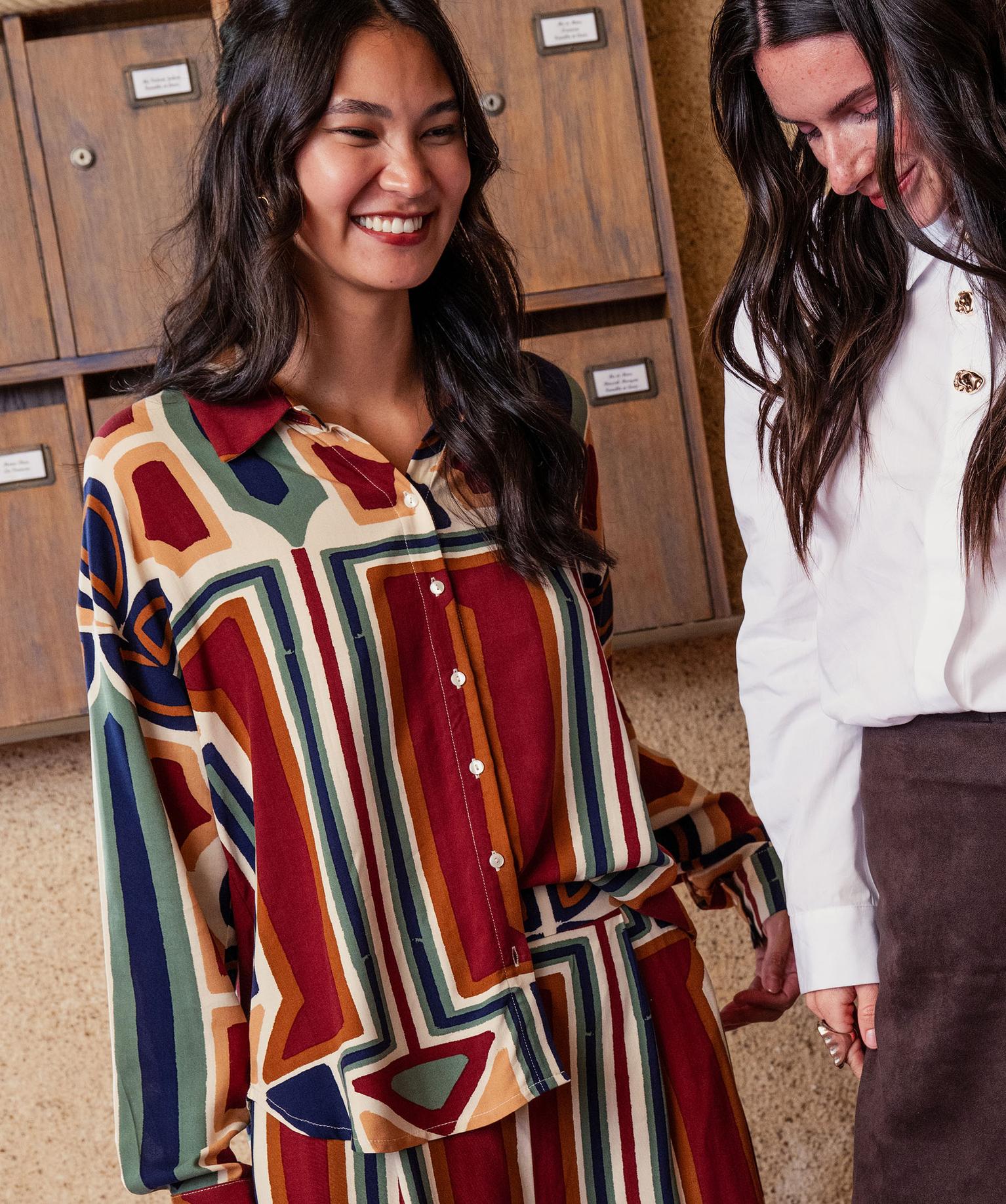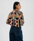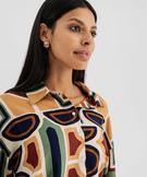 Ajoutez une touche colorée dans votre dressing et dynamisez vos looks grâce à cette jolie chemise ornée de motifs géométriques. Une chemise fluide très agréable à porter, seule, sous un pull à col V ou sous une veste de blazer. Ce chemisier pour femme se ferme par une rangée de boutons aux reflets nacrés et possède des biais fermés par deux boutons aux poignets.