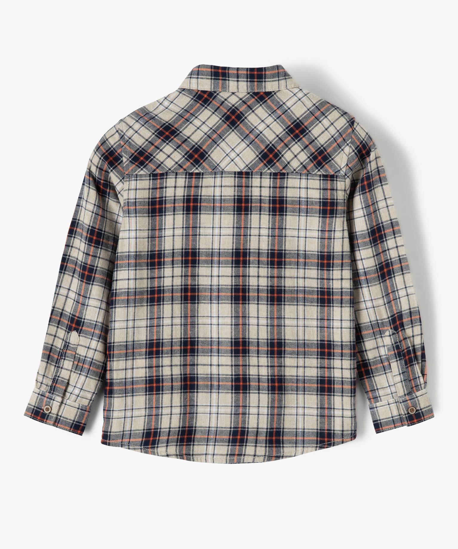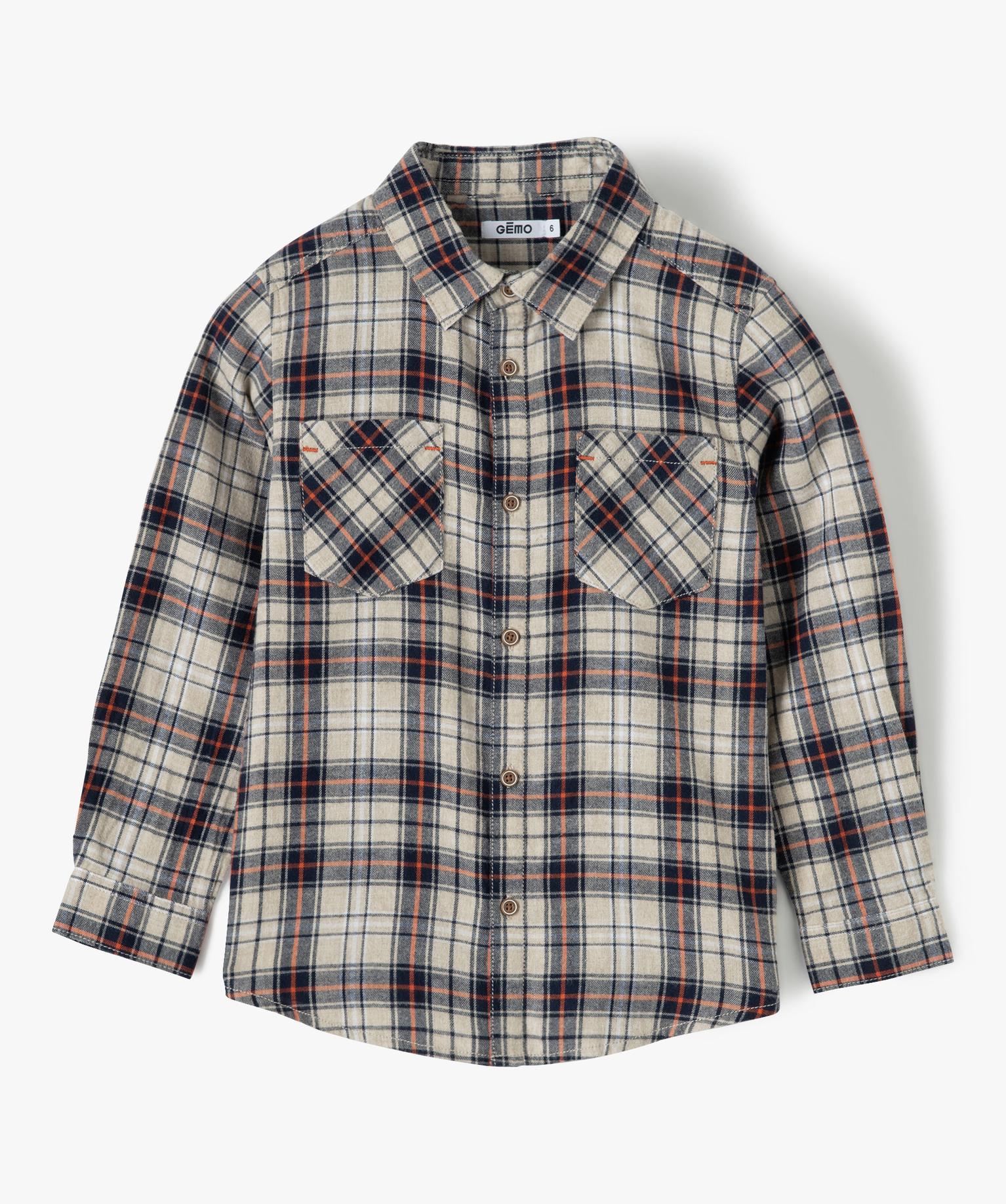 Confort et style assurés pour les enfants avec cette chemise à carreaux. Une chemise garçon confectionnée dans un coton ultra doux façon flanelle. Elle possède deux poches plaquées sur la poitrine et se ferme par petits boutons sur l’avant et aux poignets. Une chemise à porter seule avec un pantalon chino ou ouverte sur un tee-shirt pour une allure plus tendance.
