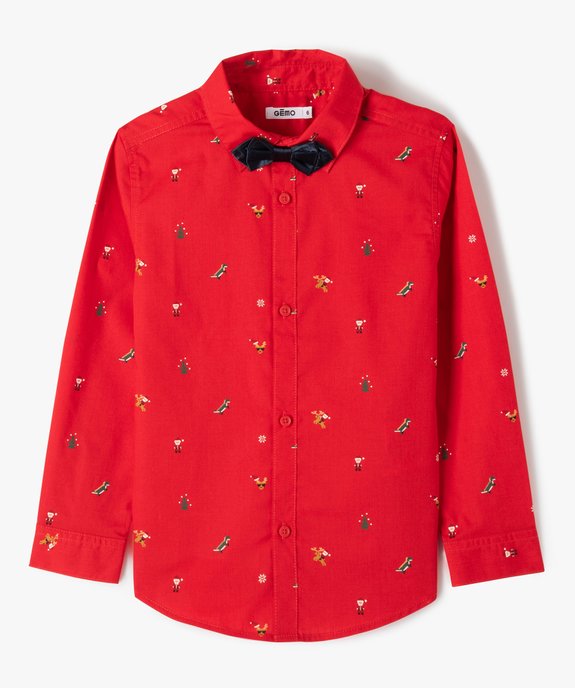 Chemise garçon à manches longues et nœud papillon spécial Noël imprime