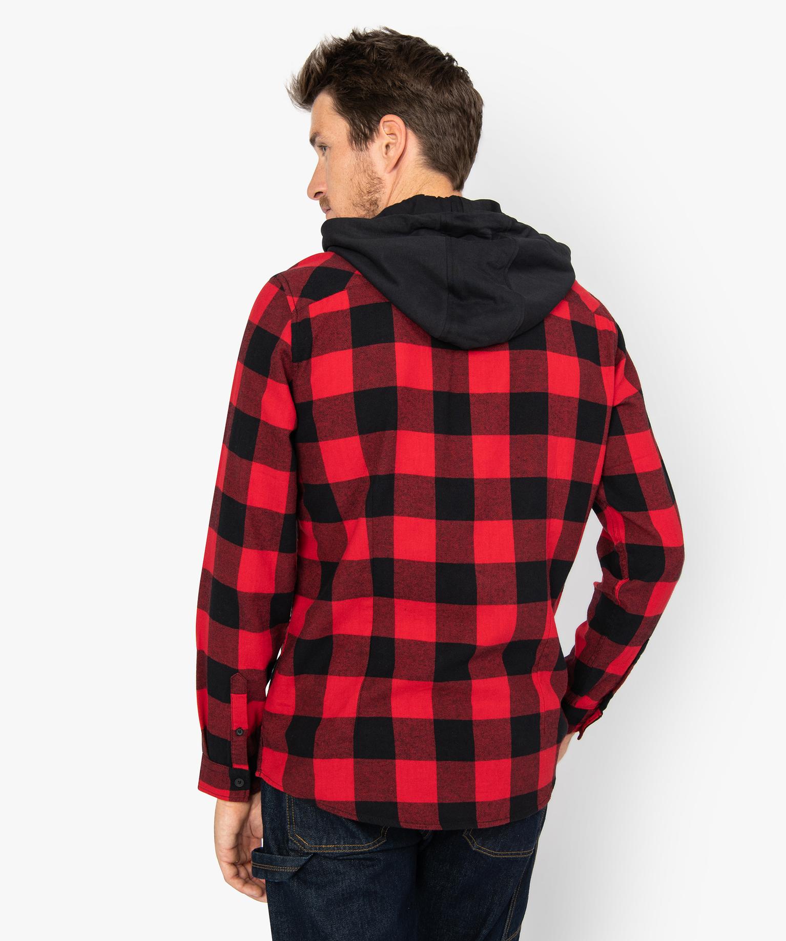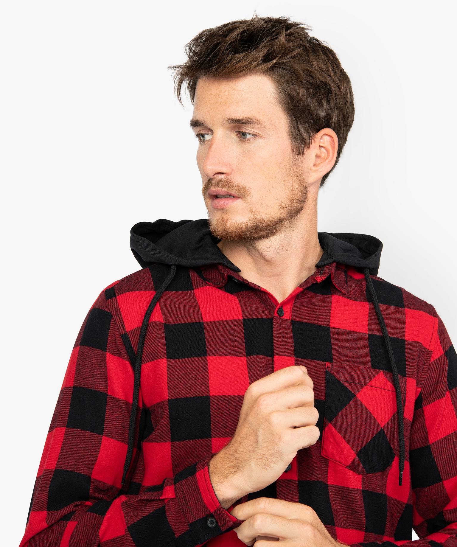 Chemise homme à carreaux avec capuche amovible vert chine