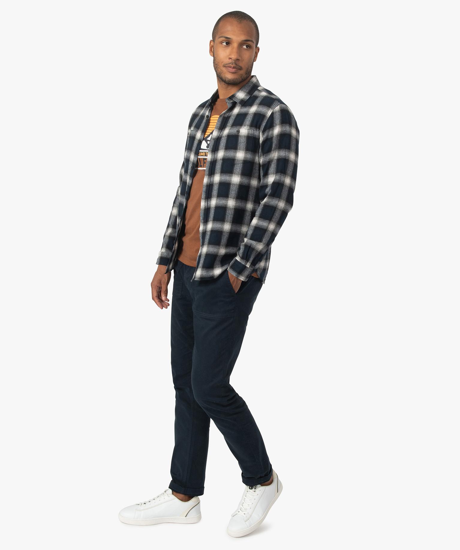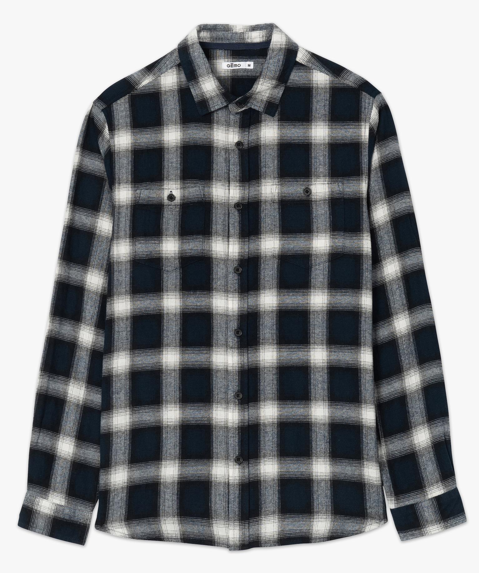 Retrouvez le charme indémodable de la chemise à carreaux ! Cette chemise homme offre beaucoup de confort et de douceur grâce à une composition 100% coton. Elle possède deux poches poitrine fermées par un petit bouton et un bas arrondi qui lui permet d’être portée par-dessus le pantalon. Une chemise à porter avec un jean et des boots pour un look casual.