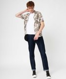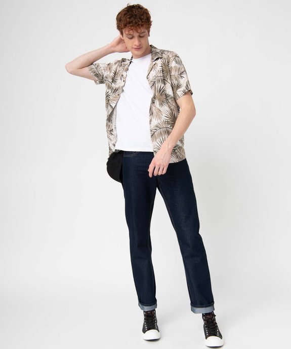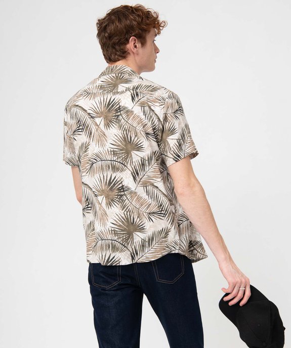 Chemise à manches courtes à motif feuillage avec col cubain homme