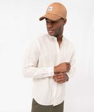 Chemise homme en lin mélangé rayé à manches longues et col mao beige