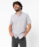 Chemise homme manches courtes coupe droite à motif fleuri blanc/imprime