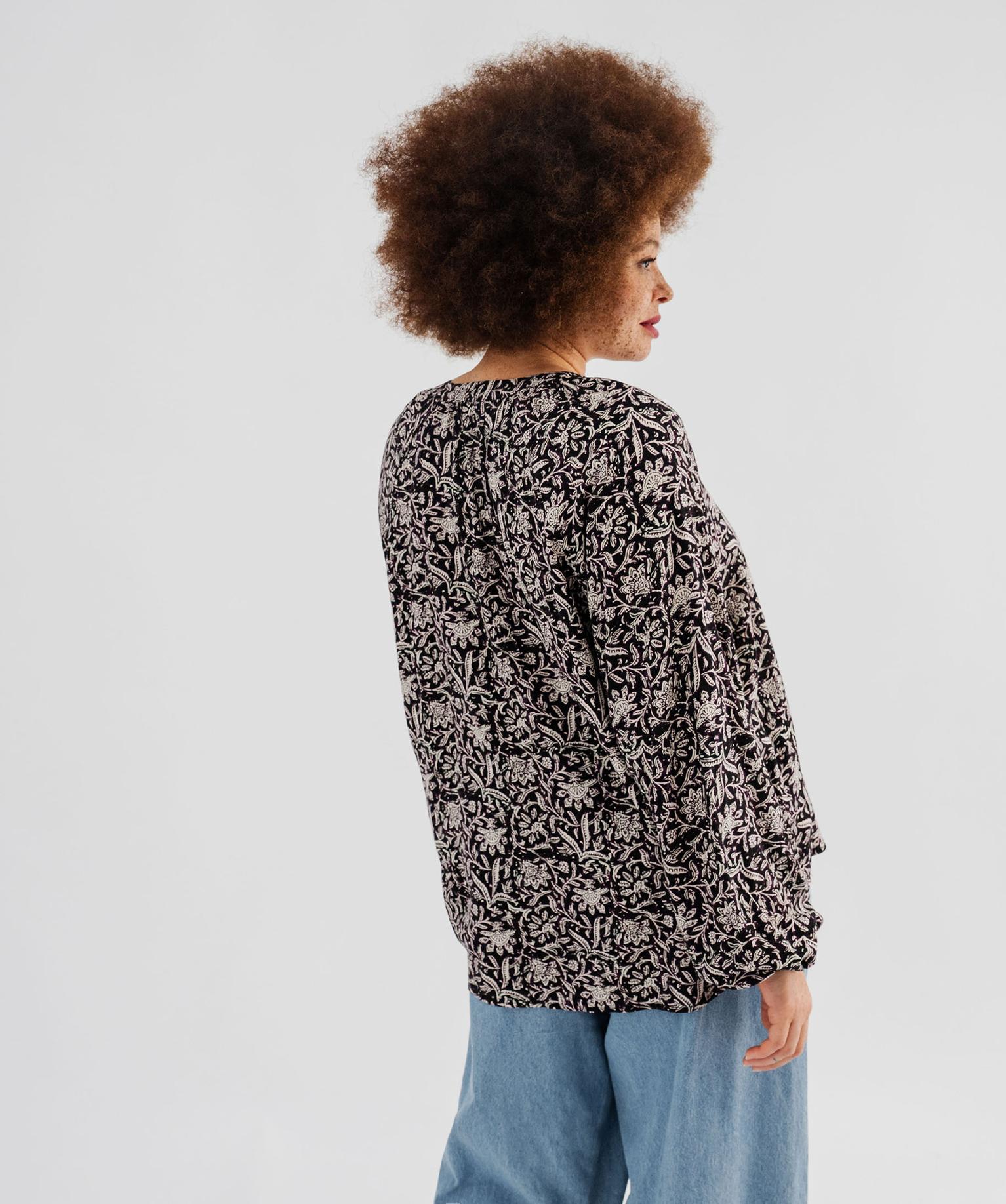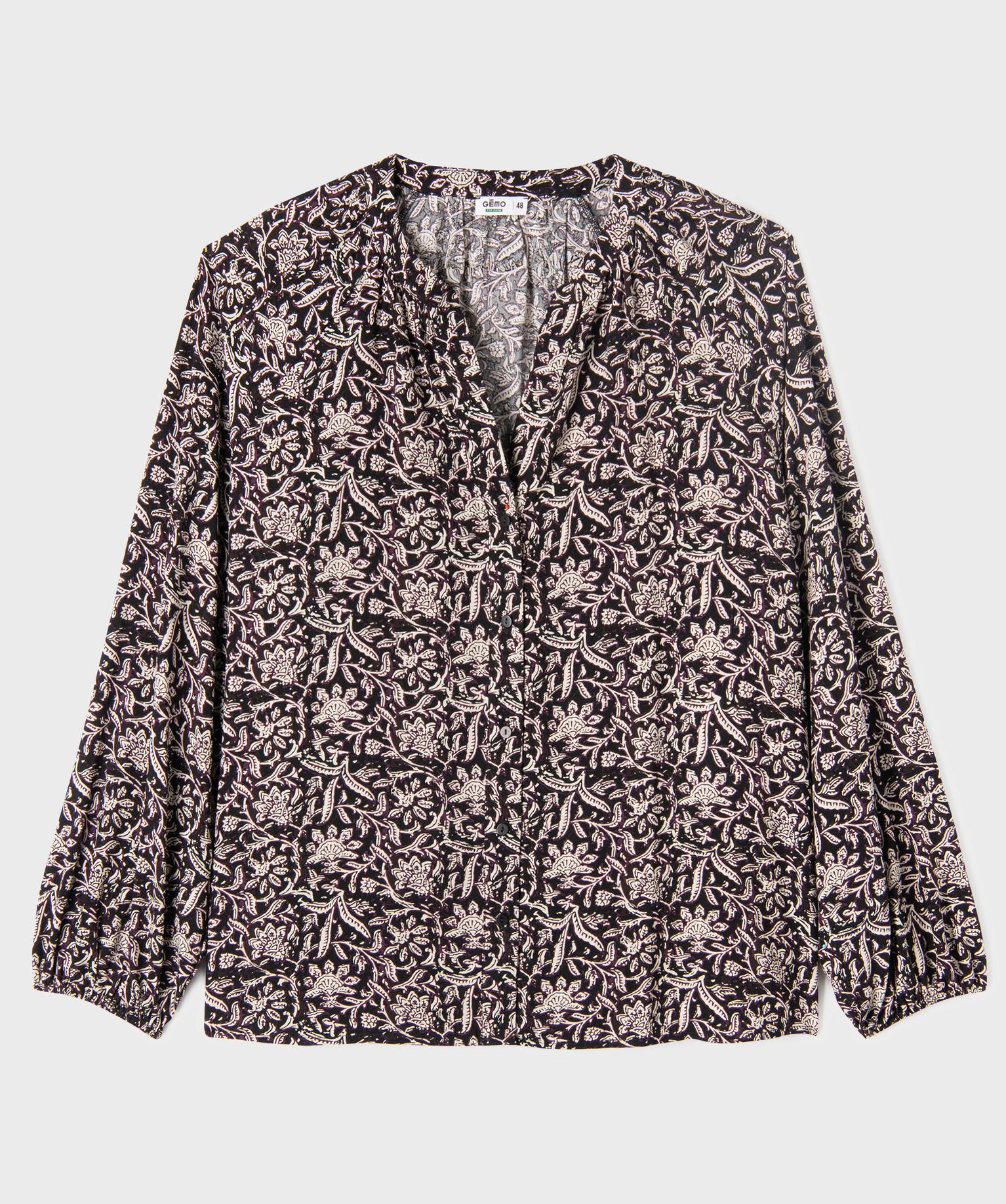 Confort et élégance garantis avec cette chemise imprimée en viscose, pensée pour sublimer toutes les silhouettes. Sa matière viscose fluide assure confort et légèreté tandis que la coupe ample offre une grande liberté de mouvement. Cette chemise femme grande taille (du 46 au 54) possède un col rond avec fronces et ouverture en V qui se prolonge par une rangée de petits boutons. Les manches larges sont resserrées aux poignets par un élastique. Déclinées dans des imprimés tendance, cette chemise fluide s’associe facilement à un pantalon uni, un jean ou une jupe.