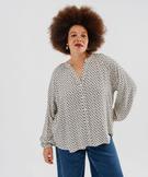 Confort et élégance garantis avec cette chemise imprimée en viscose, pensée pour sublimer toutes les silhouettes. Sa matière viscose fluide assure confort et légèreté tandis que la coupe ample offre une grande liberté de mouvement. Cette chemise femme grande taille (du 46 au 54) possède un col rond avec fronces et ouverture en V qui se prolonge par une rangée de petits boutons. Les manches larges sont resserrées aux poignets par un élastique. Déclinées dans des imprimés tendance, cette chemise fluide s’associe facilement à un pantalon uni, un jean ou une jupe.