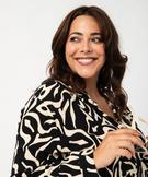 Ce sublime chemisier imprimé assure aux femmes un maximum de confort et d’élégance. Confectionné en viscose fluide à l’aspect légèrement froissé, il offre un contact ultra doux sur la peau. Cette chemise femme grande taille (du 46 au 54) séduit également par ses motifs abstraits au style résolument contemporain. Une chemise fluide à porter avec un pantalon en toile ou avec un jean. Fermeture par boutons sur l’avant et aux poignets.