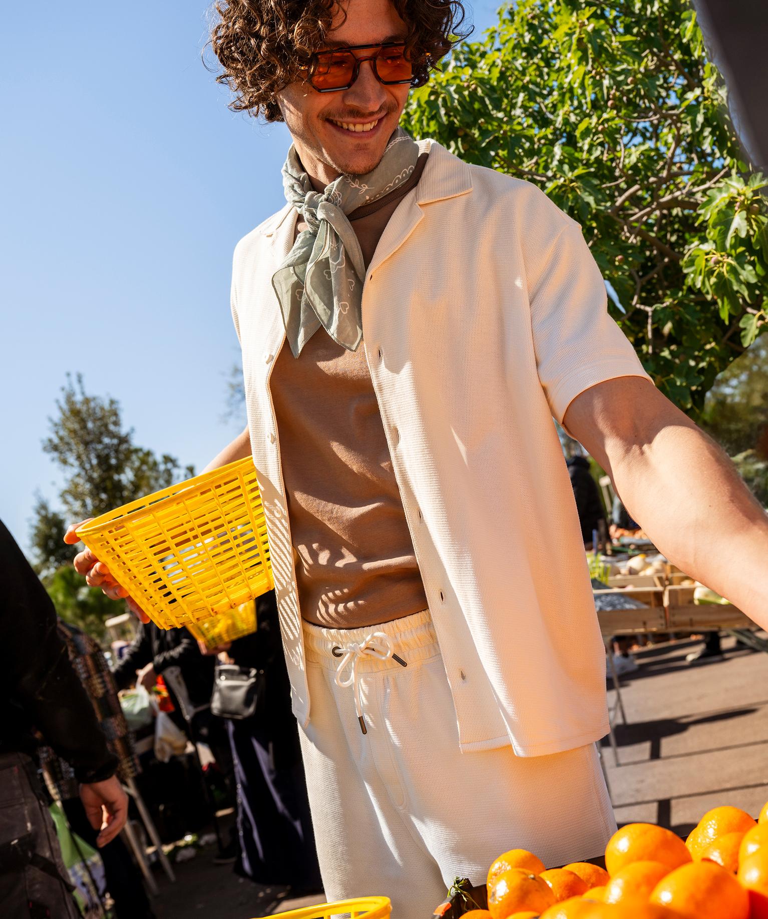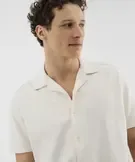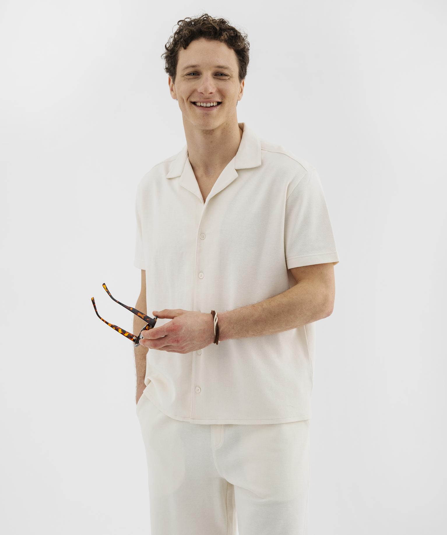 Chemise manches courtes à col cubain en maille piquée homme ecru