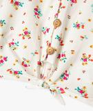 Ajoutez une touche de naturel dans le vestiaire des filles avec cette jolie chemise fleurie confectionnée dans une alliance de viscose, de coton et de lin. Cette chemise pour fille est sublimée par de délicats motifs fleuris aux couleurs vives, des manches larges et de petites fronces sur les épaules. Elle se ferme grâce à une rangée de boutons aspect bois et des pattes à nouer dans le bas. Une chemise courte aux accents vintage à porter avec un jean taille haute ou avec un pantalon en lin comme tenue de cérémonie. Emmanchures raglan. Bas élastique au dos.