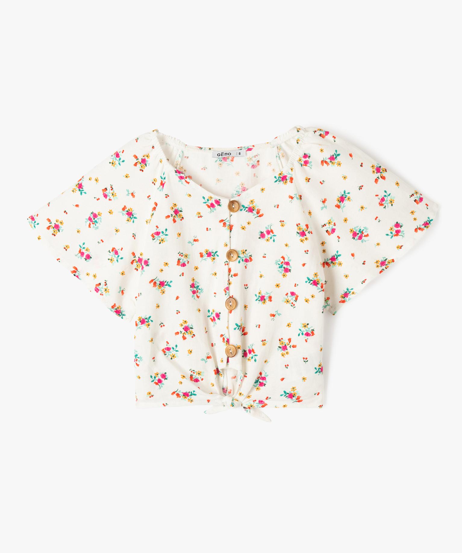 Chemise manches courtes à motifs fleuris fille[MISSING] blanc chine
