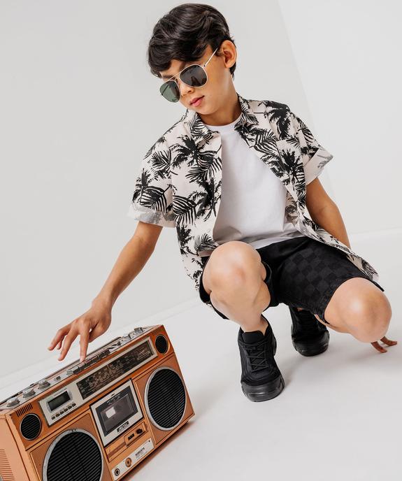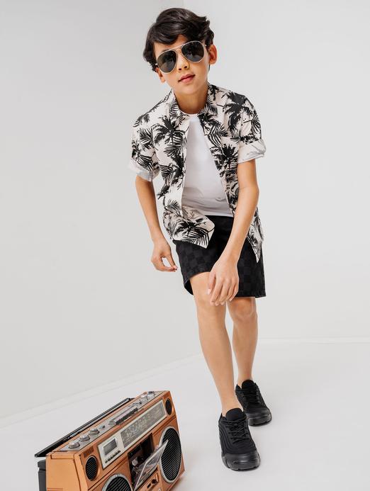 Symbole incontournable de l’été, la chemise à manches courtes s’affiche avec de larges motifs palmiers. Une chemise garçon confectionnée en coton à porter avec un bermuda, fermée ou ouverte sur un tee-shirt pour encore plus de style. Dotée d’un col classique, cette chemise imprimée est agrémentée d’un poche plaquée sur la poitrine. Un véritable essentiel pour ceux qui veulent allier confort, style et esprit estival en toute simplicité.