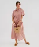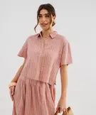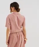 Chemise manches courtes coupe courte en coton et viscose femme rose clair