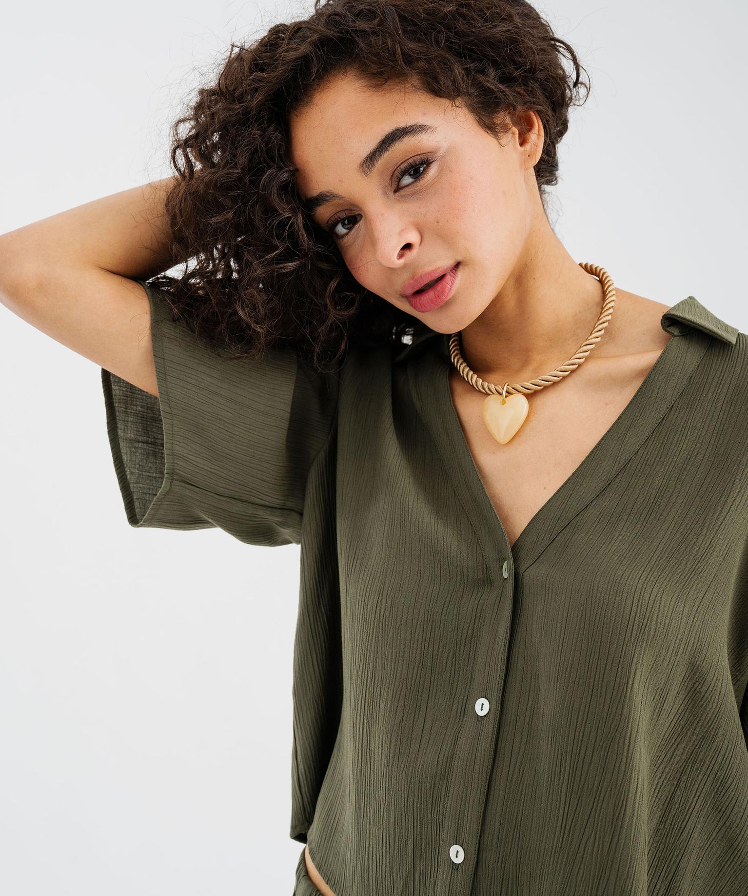 Chemise manches courtes courte coupe ample femme kaki fonce