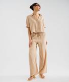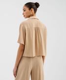 Gémo présente une nouvelle version de la chemise pour femme. Ce modèle se distingue par sa coupe courte et large, son col chemise avec profond décolleté et ses manches courtes évasées qui flottent sur le haut des bras. Confectionnée dans une matière viscose aspect froissé, cette chemise ample affiche une allure résolument décontractée. Dans le dos, des petites fronces ajoutent de l’ampleur pour un maximum d’aisance. Elle se ferme par trois boutons aux reflets nacrés. Un chemisier uni à porter avec un pantalon taille haute et des mocassins.