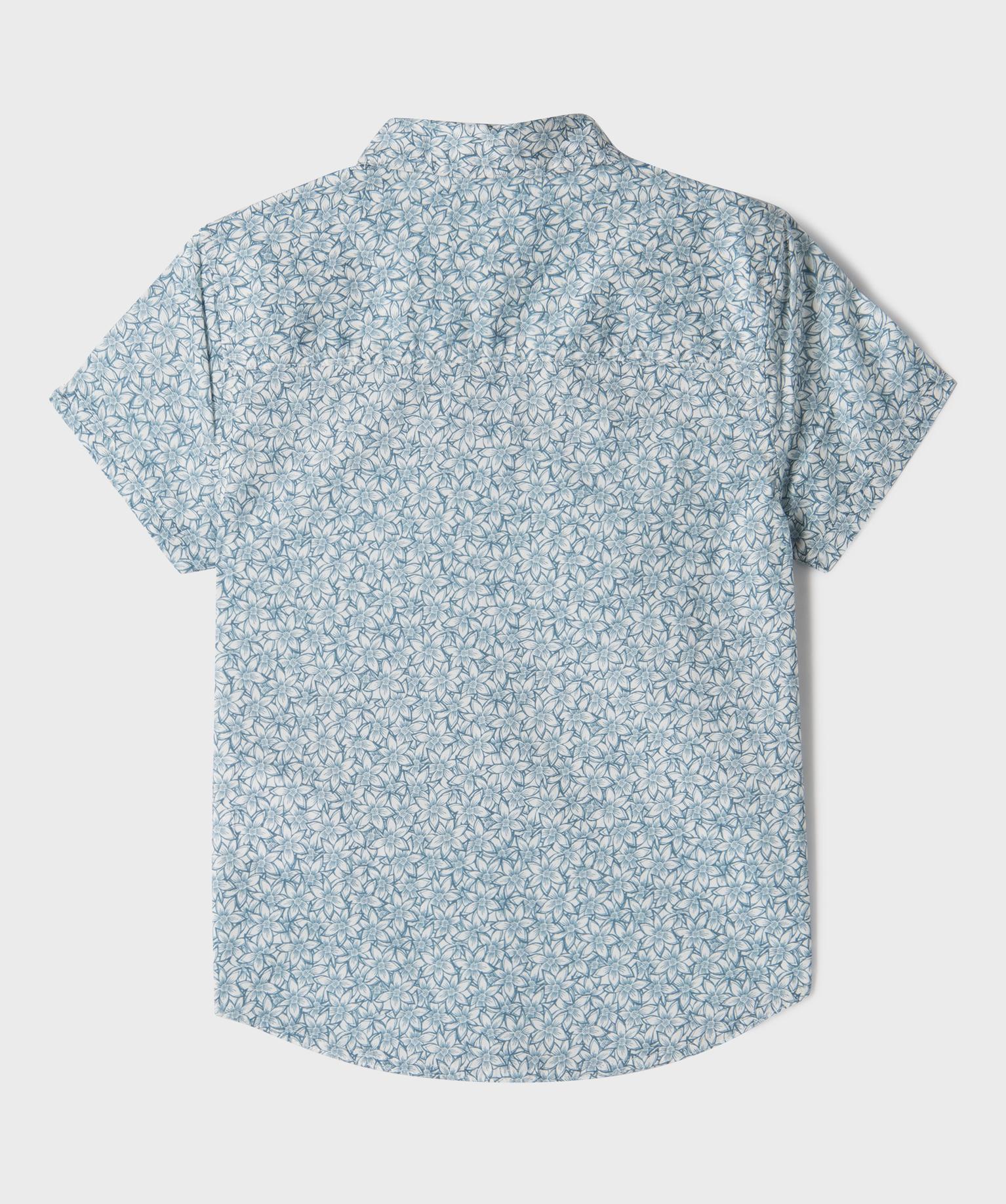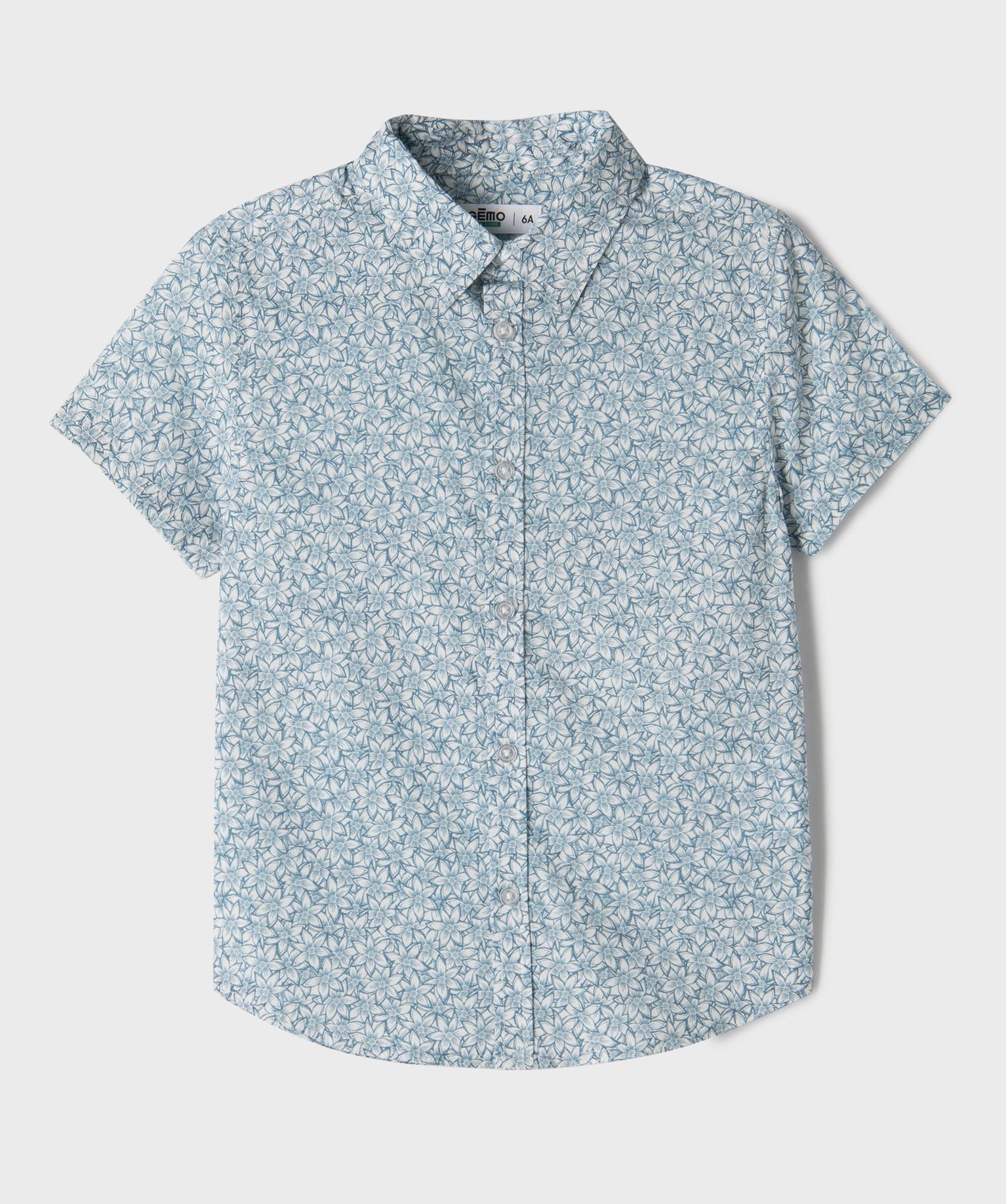 Chemise manches courtes en coton fleurie garçon bleu