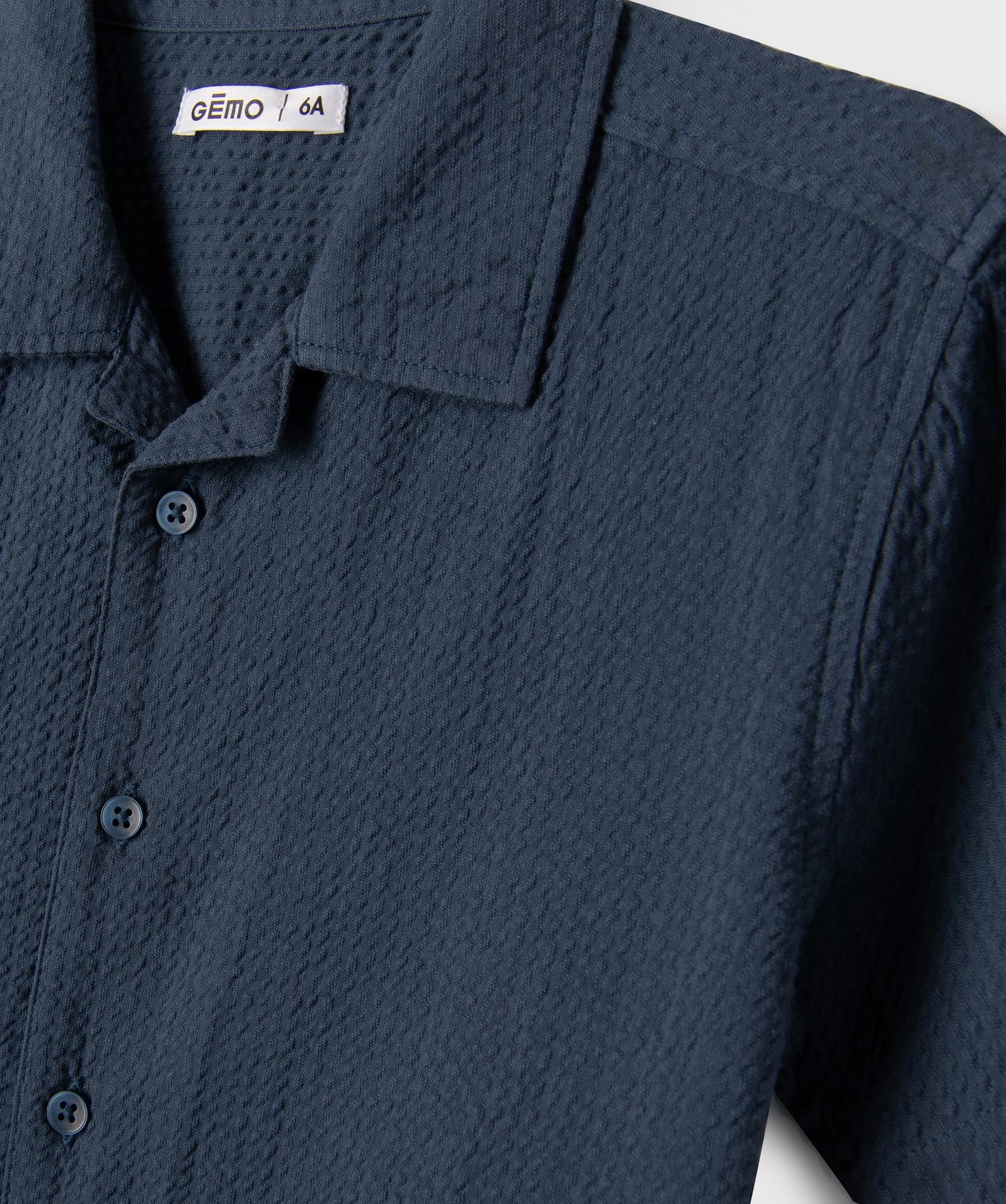Apportez une touche de fraîcheur chic au dressing de votre garçon avec cette chemise manches courtes en coton texturé. Son col cubain et sa boutonnière ton sur ton lui confèrent un look élégant et décontracté à la fois. On adore la matière douce, souple et originale, parfaite pour l’été. La coupe droite rend cette chemise garçon facile à assortir, notamment avec le bermuda assorti pour un ensemble harmonieux et confortable.