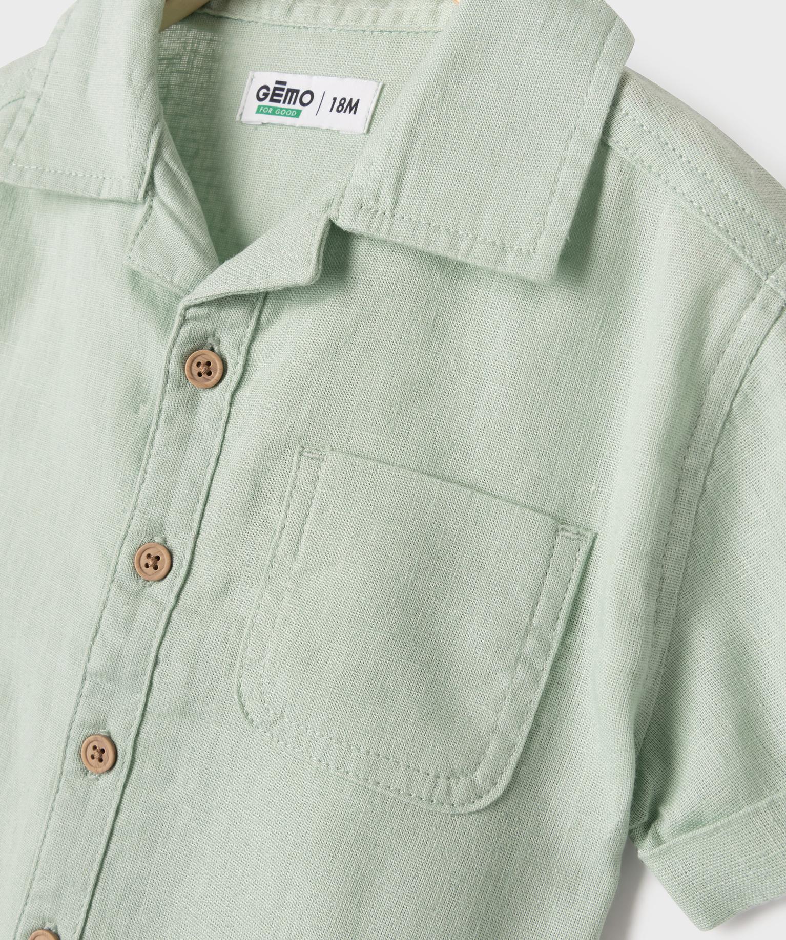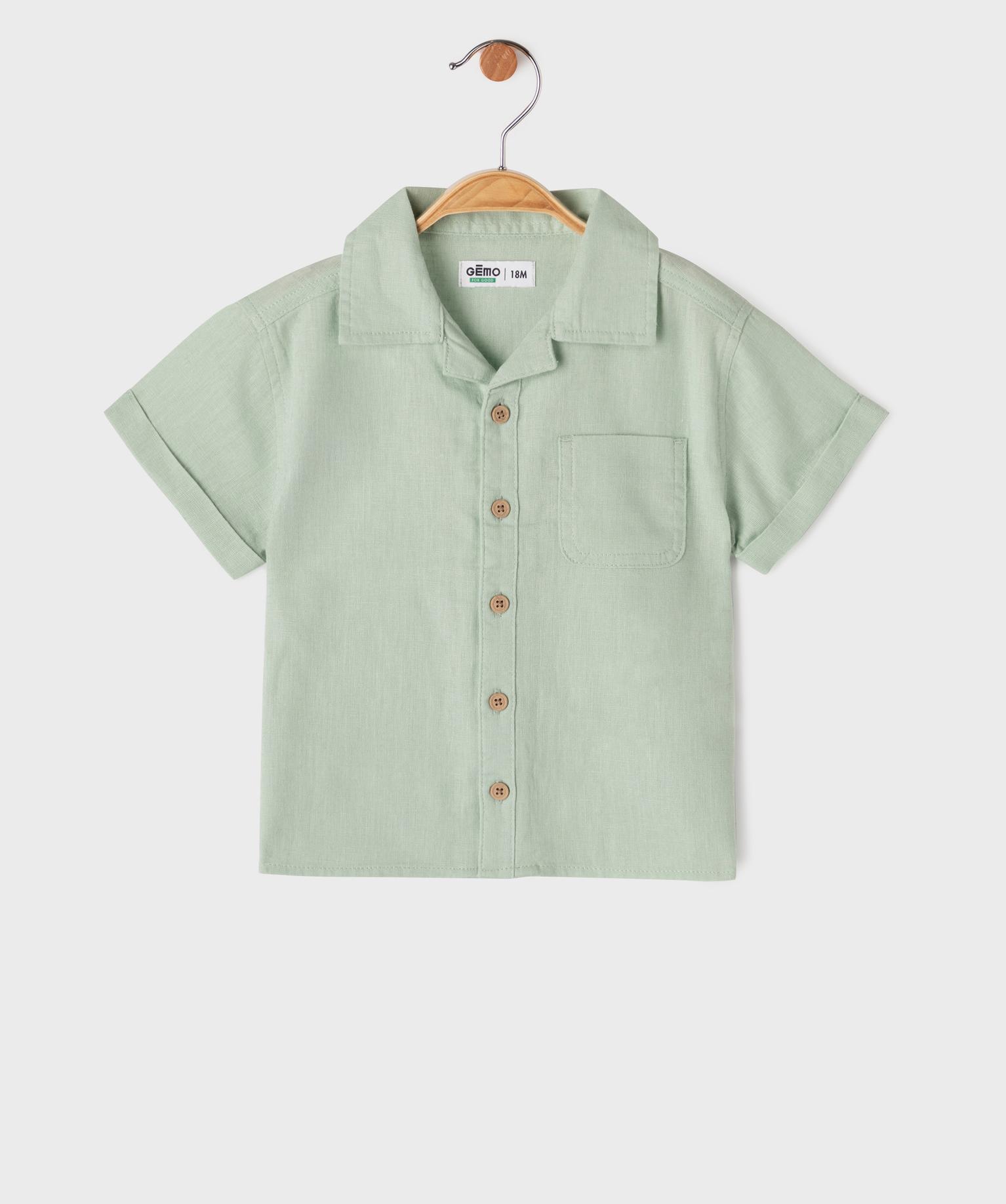Chemise manches courtes en lin et coton bébé garçon vert clair
