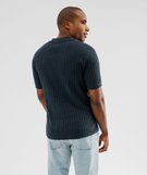 Chemise manches courtes en maille côtelée à col cubain homme bleu fonce
