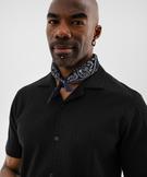 Chemise manches courtes en maille fantaisie avec col cubain homme noir