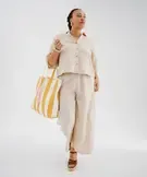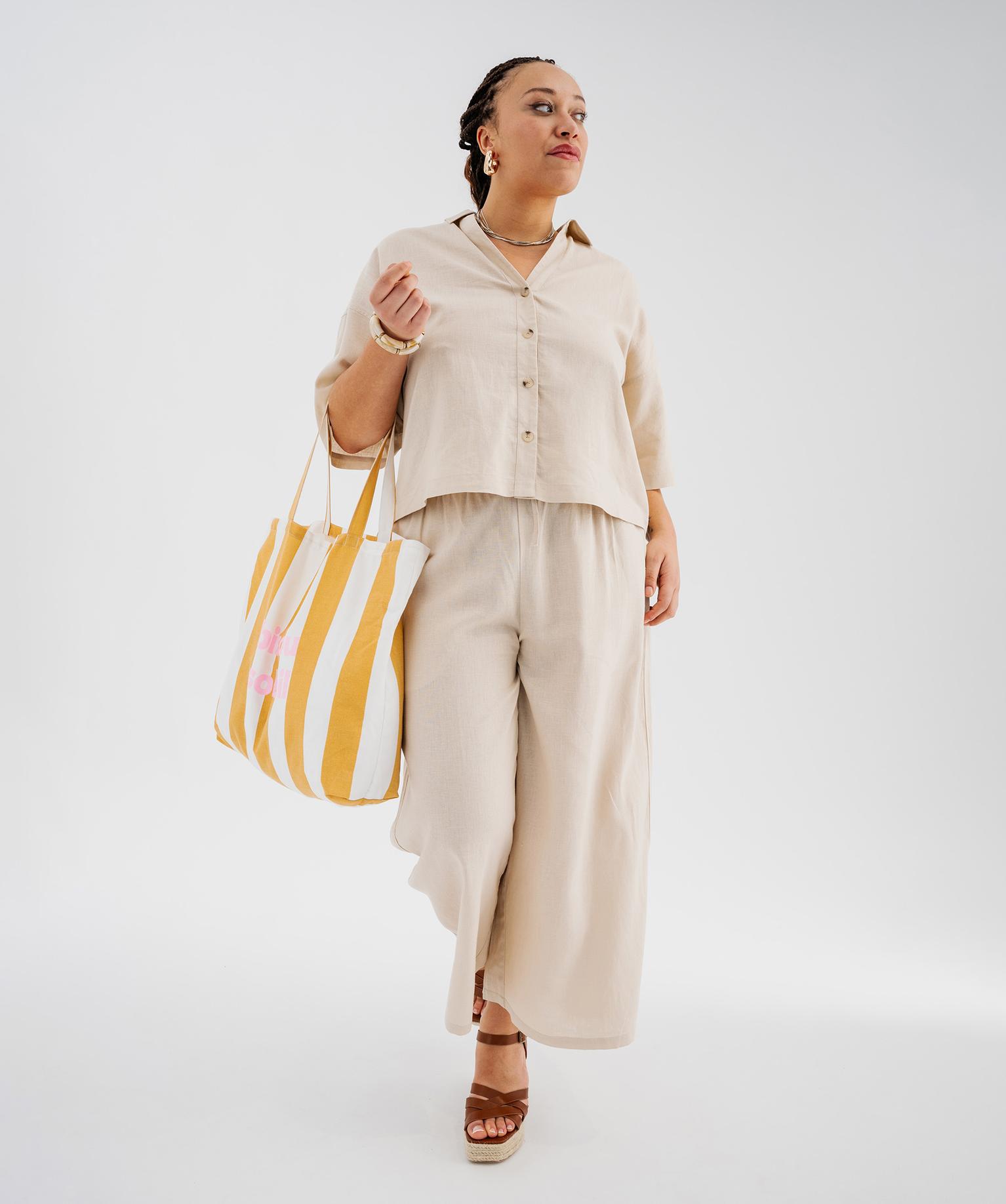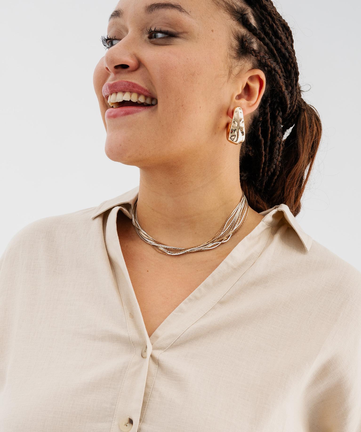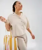 Chemise manches courtes en viscose et lin femme grande taille beige