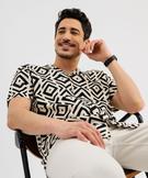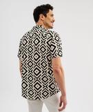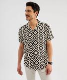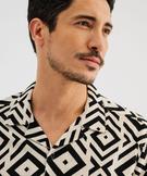 Chemise manches courtes et col cubain à motifs graphiques homme beige
