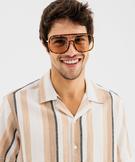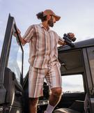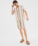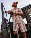 Chemise manches courtes et col cubain à rayures homme[MISSING] beige