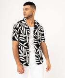 Chemise manches courtes et col cubain en coton imprimé homme[MISSING] noir