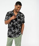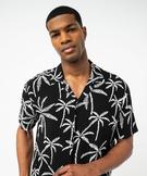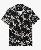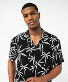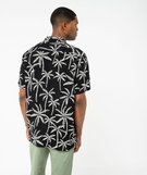 Chemise manches courtes et col cubain en viscose à motif palmiers homme noir