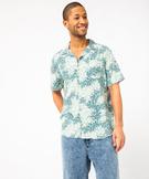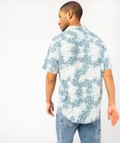 Chemise manches courtes et col cubain en viscose imprimée feuillage homme bleu ciel