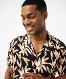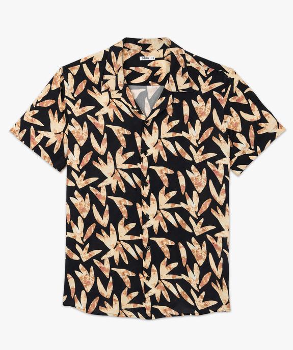 Chemise manches courtes et col cubain en viscose imprimée homme noir