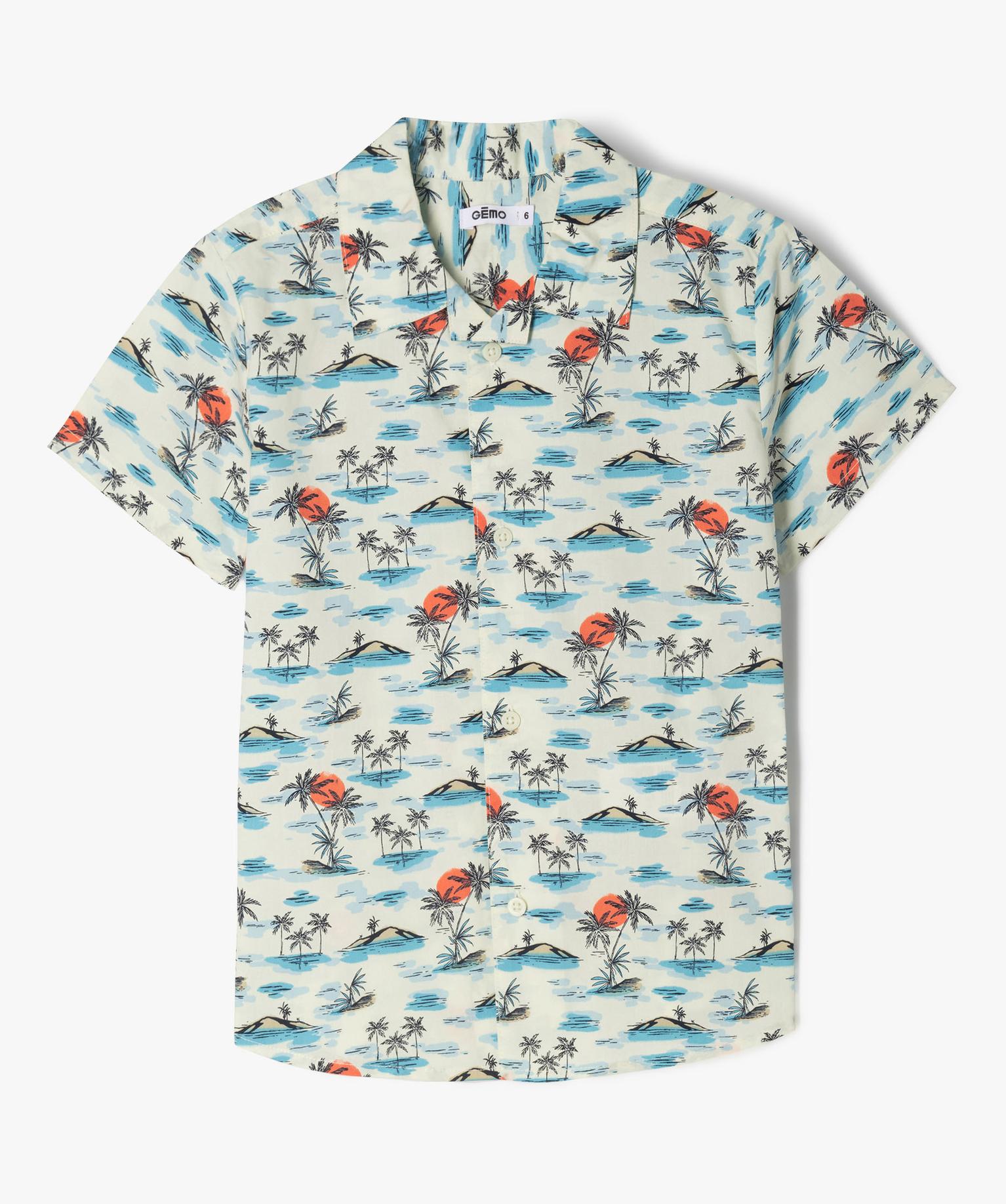 Chemise manches courtes imprimé tropical garçon[MISSING] blanc chine