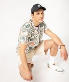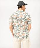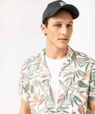 Chemise manches courtes imprimée feuillage en viscose/lin homme blanc