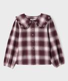 Chemise manches longues à carreaux et grand col Claudine fille[MISSING] bordeaux