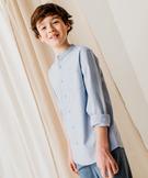 Chemise manches longues à col mao en coton lin mélangés garçon[MISSING] bleu