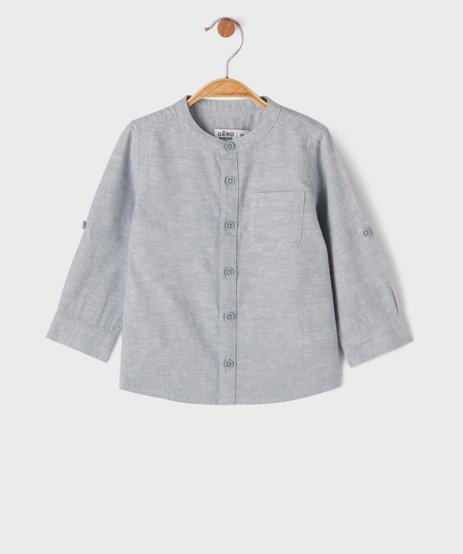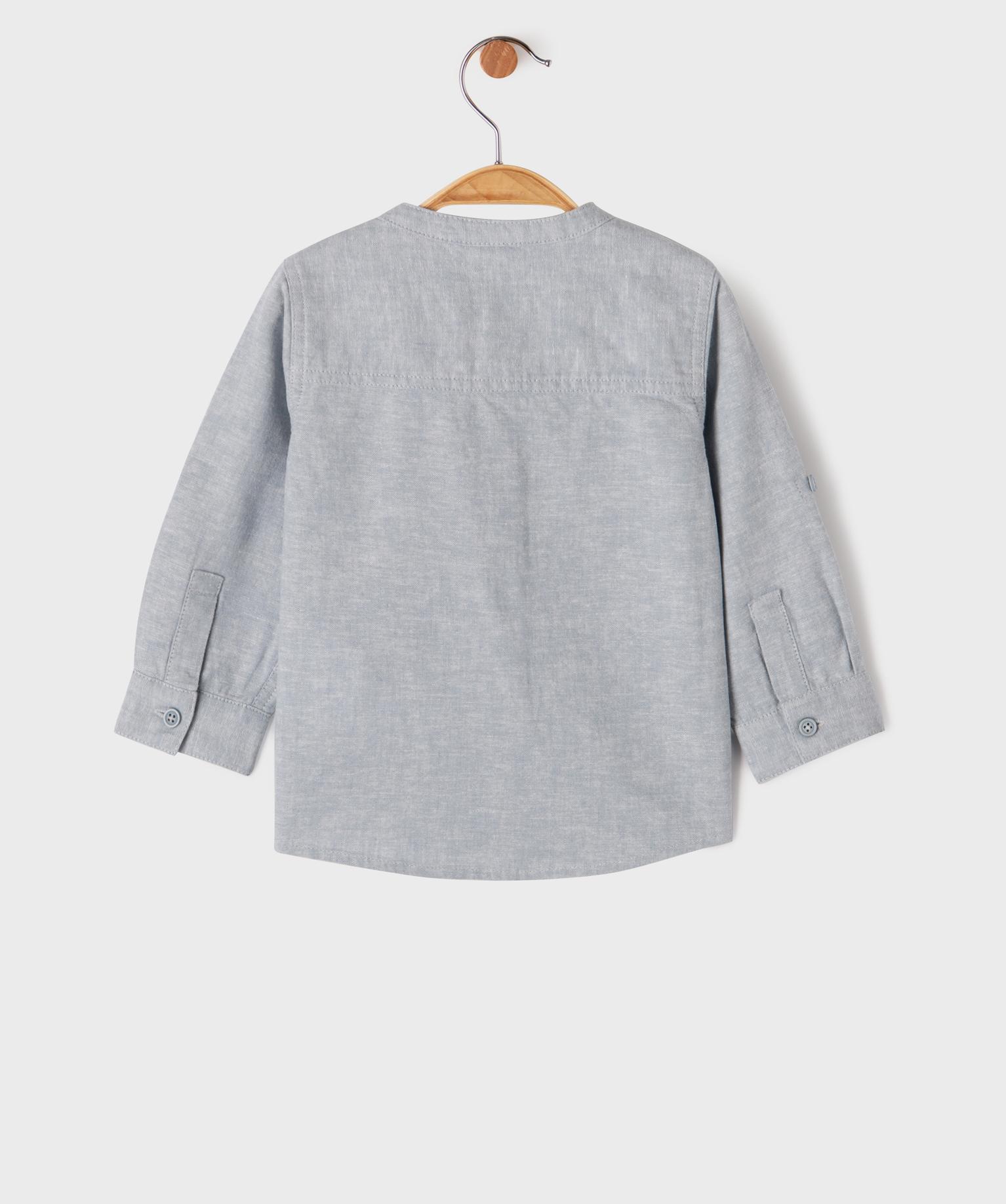 Chemise manches longues à col mao en lin et coton bébé garçon bleu