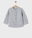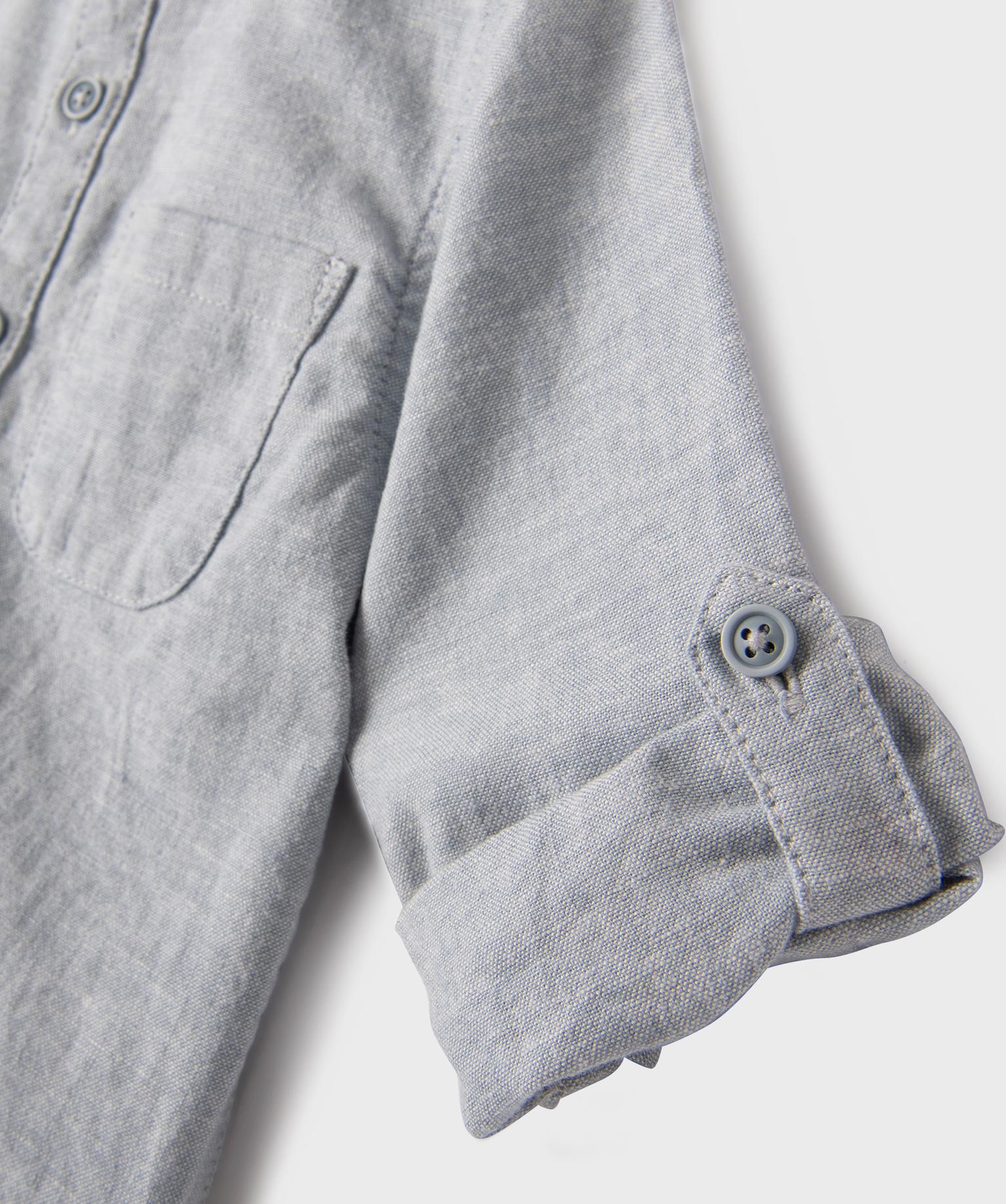 Craquez pour cette chemise bébé garçon pleine de charme ! La chemise manches longues est fabriquée dans un mélange de lin et de coton, pour un toucher tout doux et une allure naturellement élégante. Son col mao et sa petite poche poitrine apportent une touche d'originalité et de cool à ce grand classique. Les manches longues boutonnées aux poignets sont équipées d'une patte de boutonnage discrète, idéale pour maintenir les manches retroussées et adapter la tenue au fil de la journée. L'aspect chiné de la toile renforce le chic décontracté. Votre petit garçon portera cette chemise fermée avec le pantalon assorti pour un joli ensemble de cérémonie ou ouverte sur un tee-shirt avec un bermuda chino pour un style dandy.