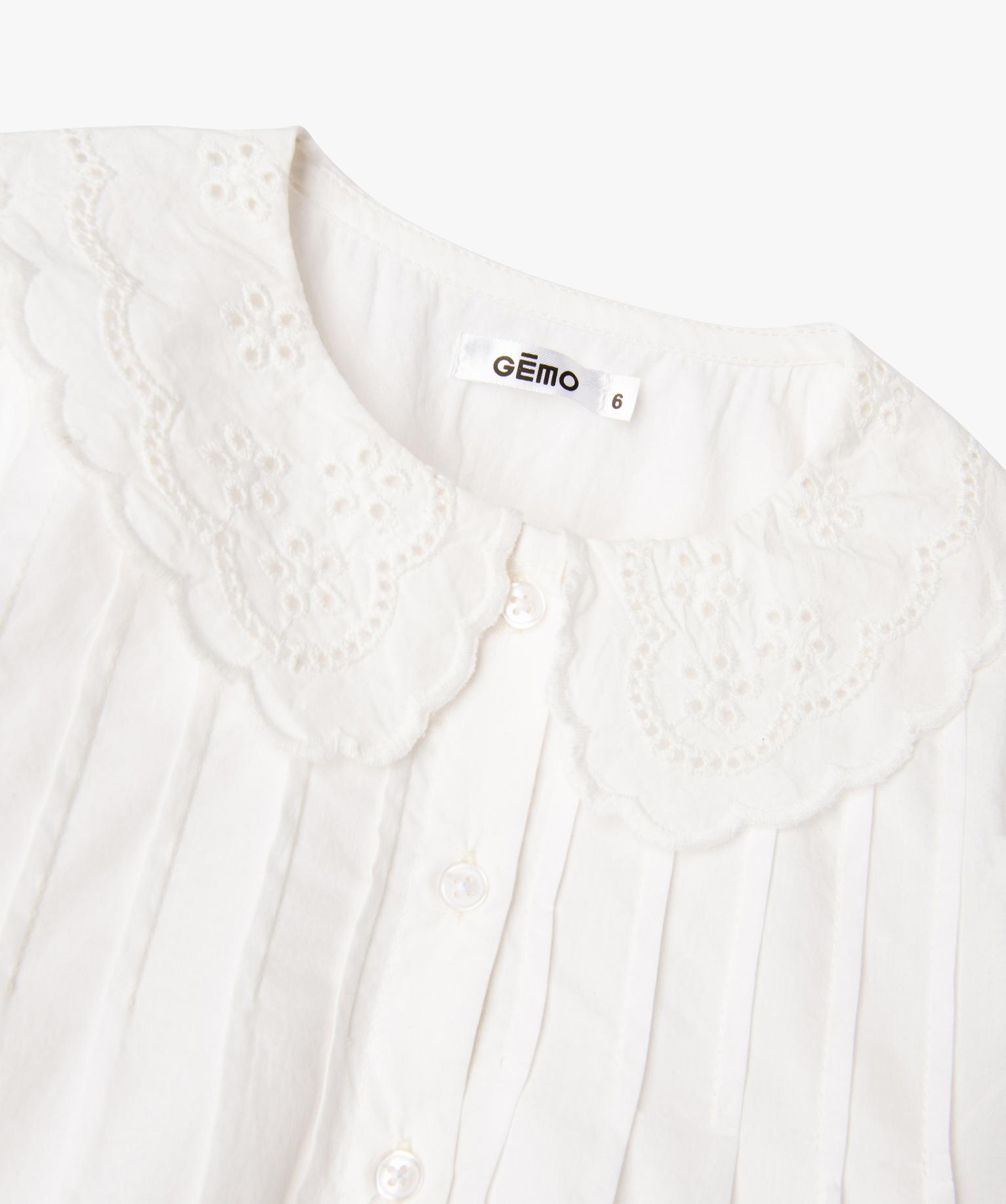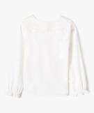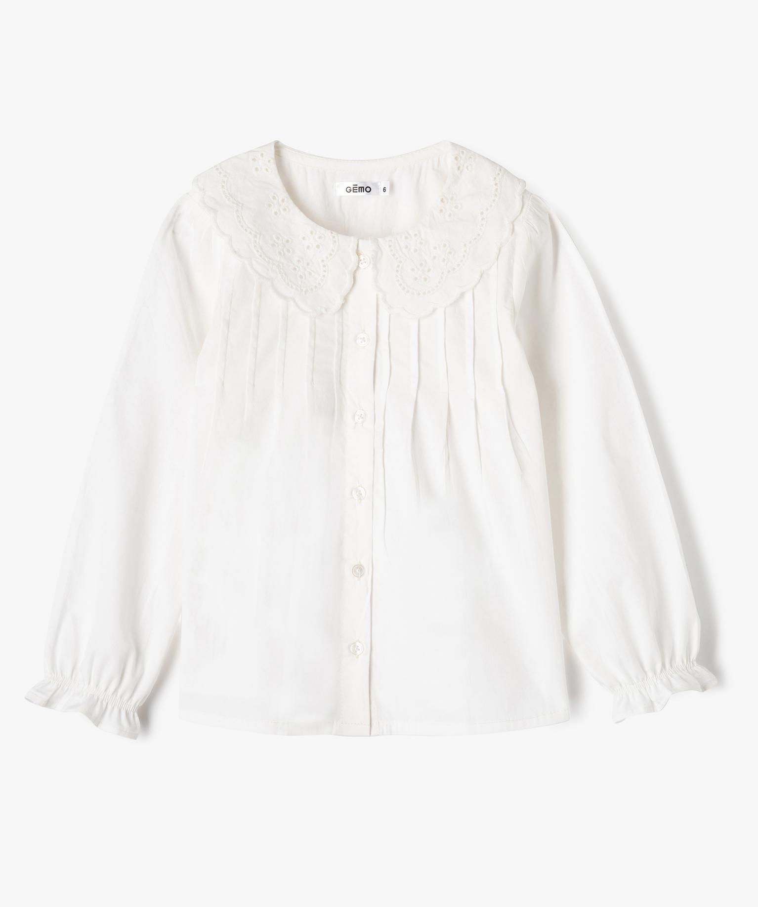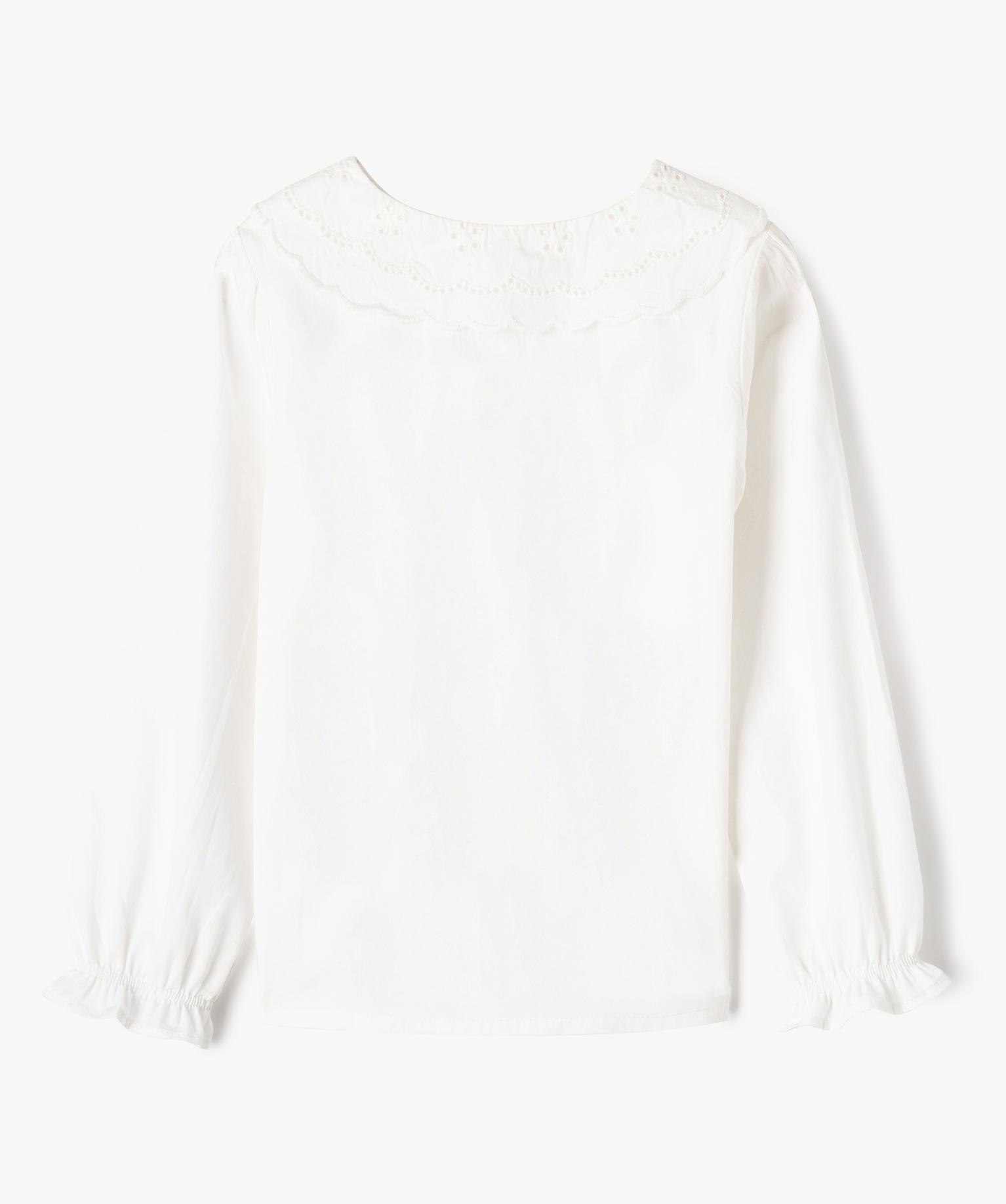 Chemise manches longues à grand col Claudine brodé fille blanc chine