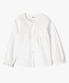 Cette chemise blanche à manches longues sera un véritable coup de cœur pour les petites modeuses ! Son grand col Claudine brodé lui confère un charme rétro irrésistible. Les plis plats sur le devant apportent une touche d'élégance romantique supplémentaire, de même que les manches blousantes avec fronces aux épaules et élastique volanté aux poignets. Une chemise fille parfaite pour les occasions spéciales ou pour un look du quotidien, cette chemise se marie aussi bien avec un jean qu'avec une jupe.