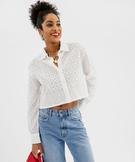 Chemise manches longues coupe courte en broderie anglaise femme blanc