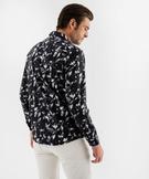 Chemise manches longues coupe droite en coton imprimé homme noir