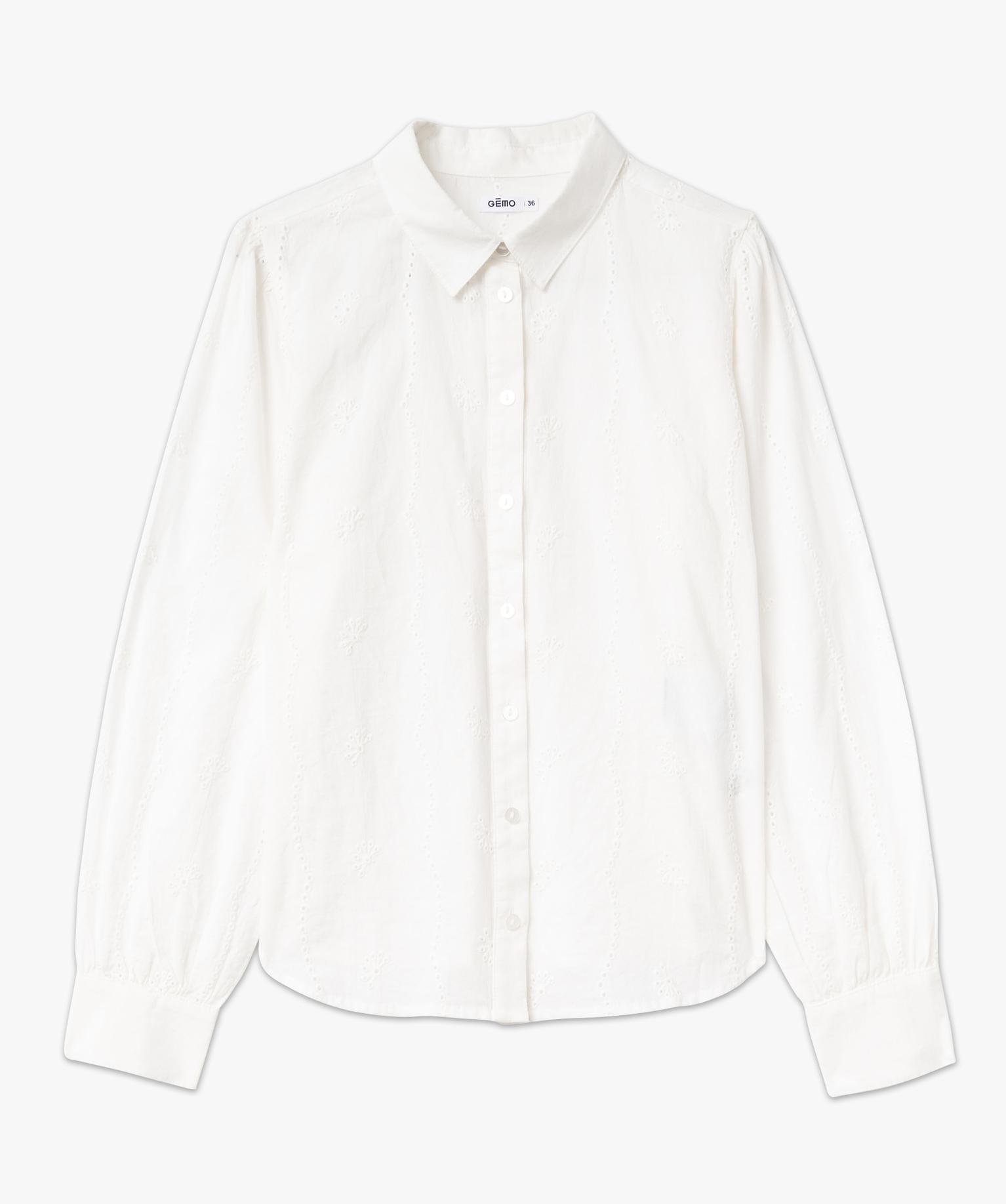 Chemise manches longues en broderie anglaise femme[MISSING] blanc chine