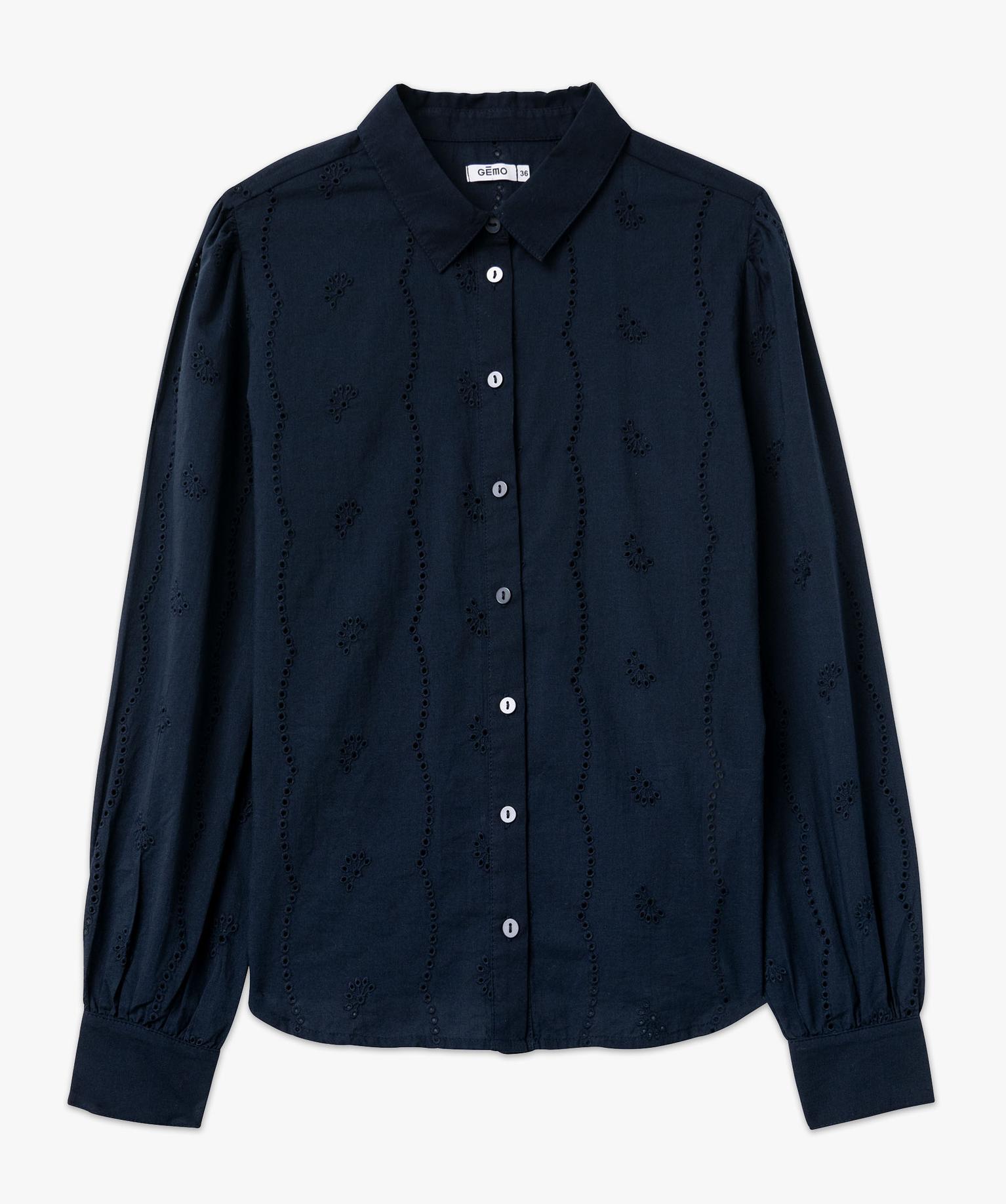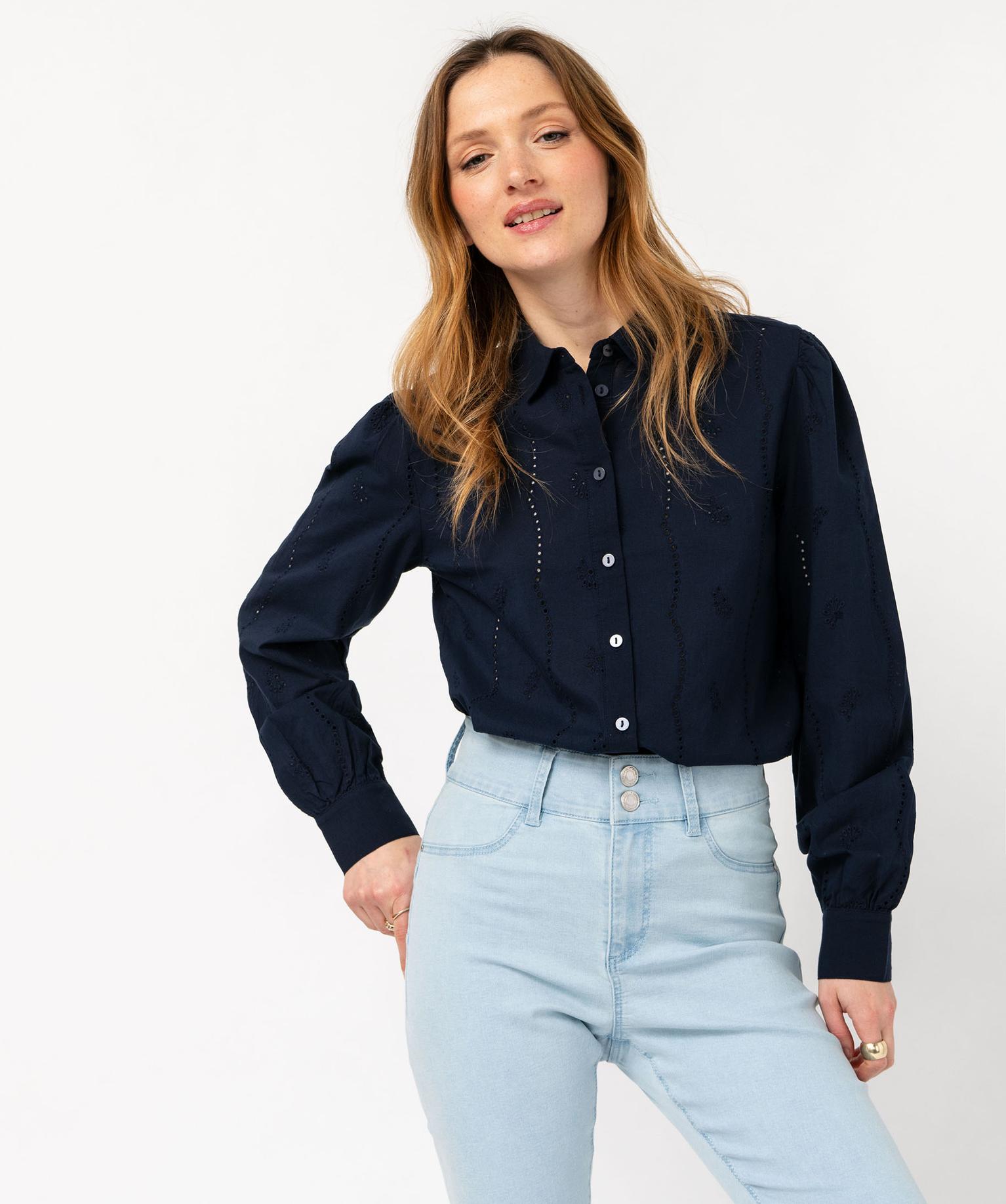 Chemise manches longues en broderie anglaise femme[MISSING] bleu marine