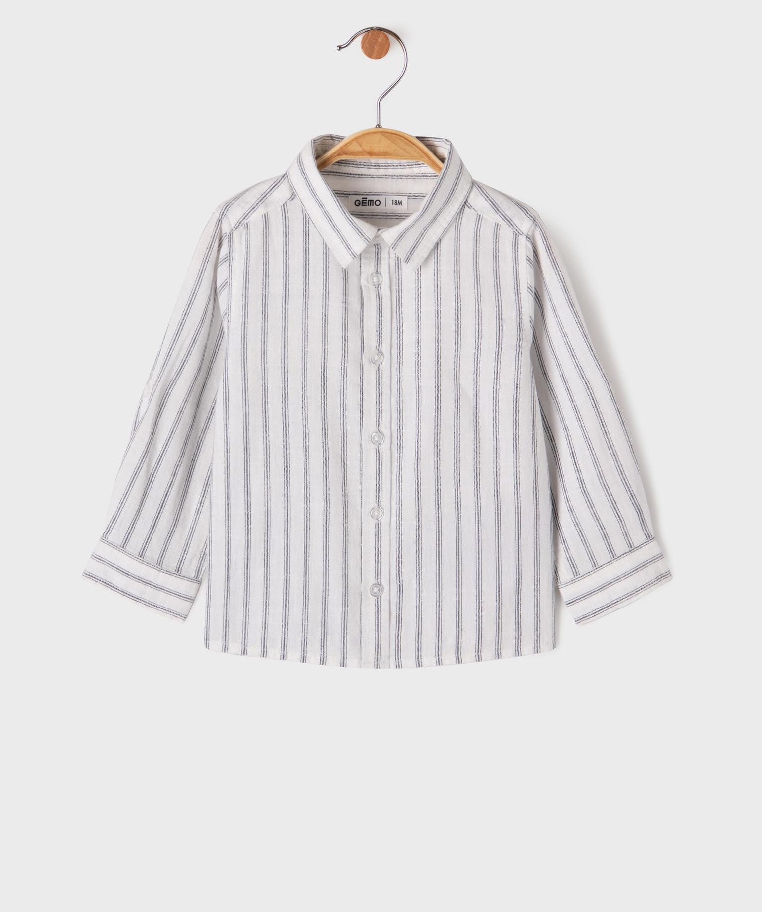 Chemise manches longues en coton rayé bébé garçon blanc