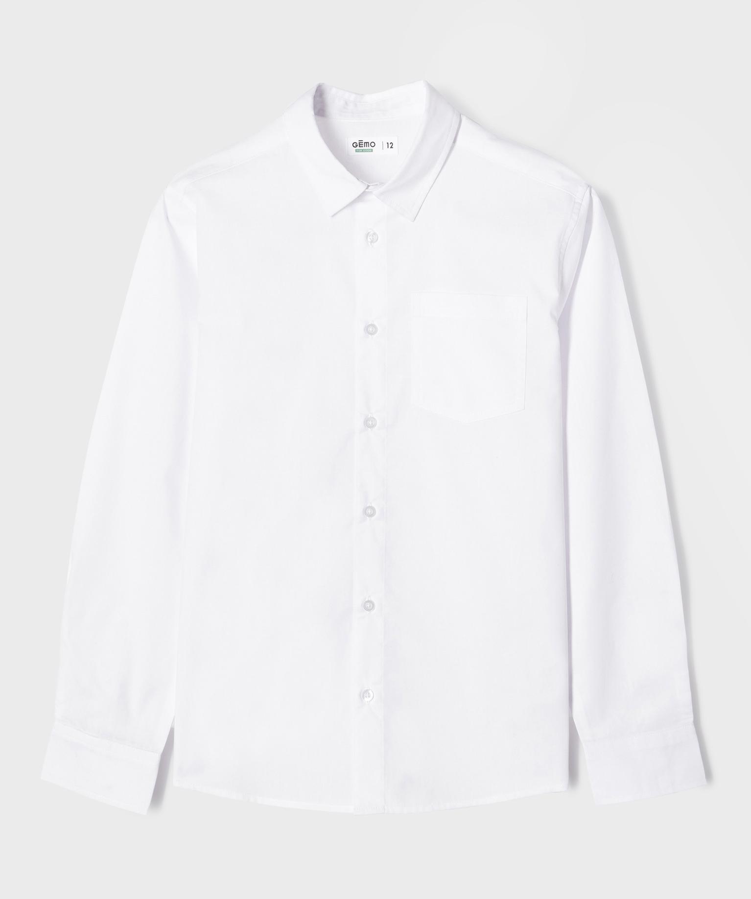Chemise manches longues en coton uni garçon blanc