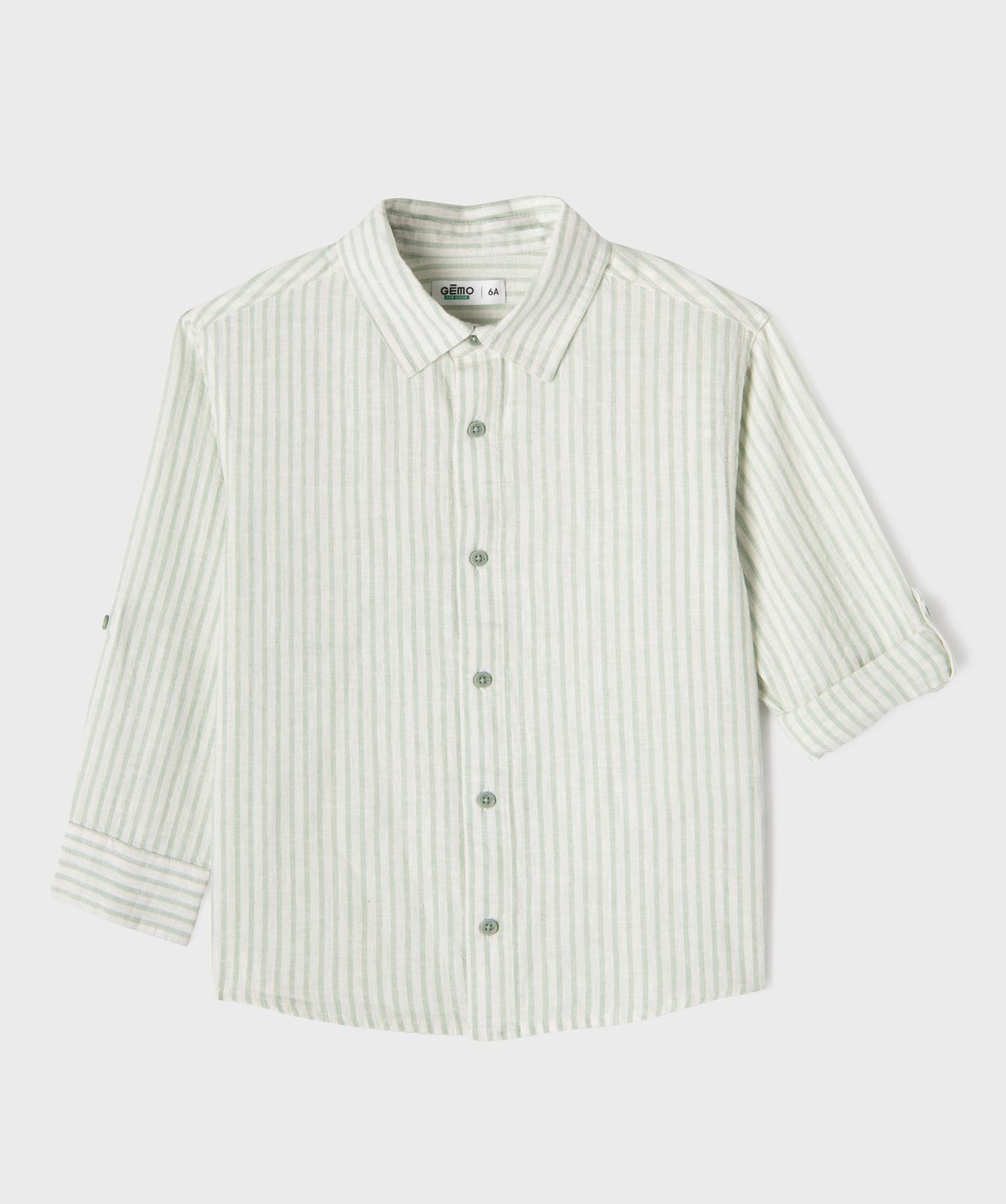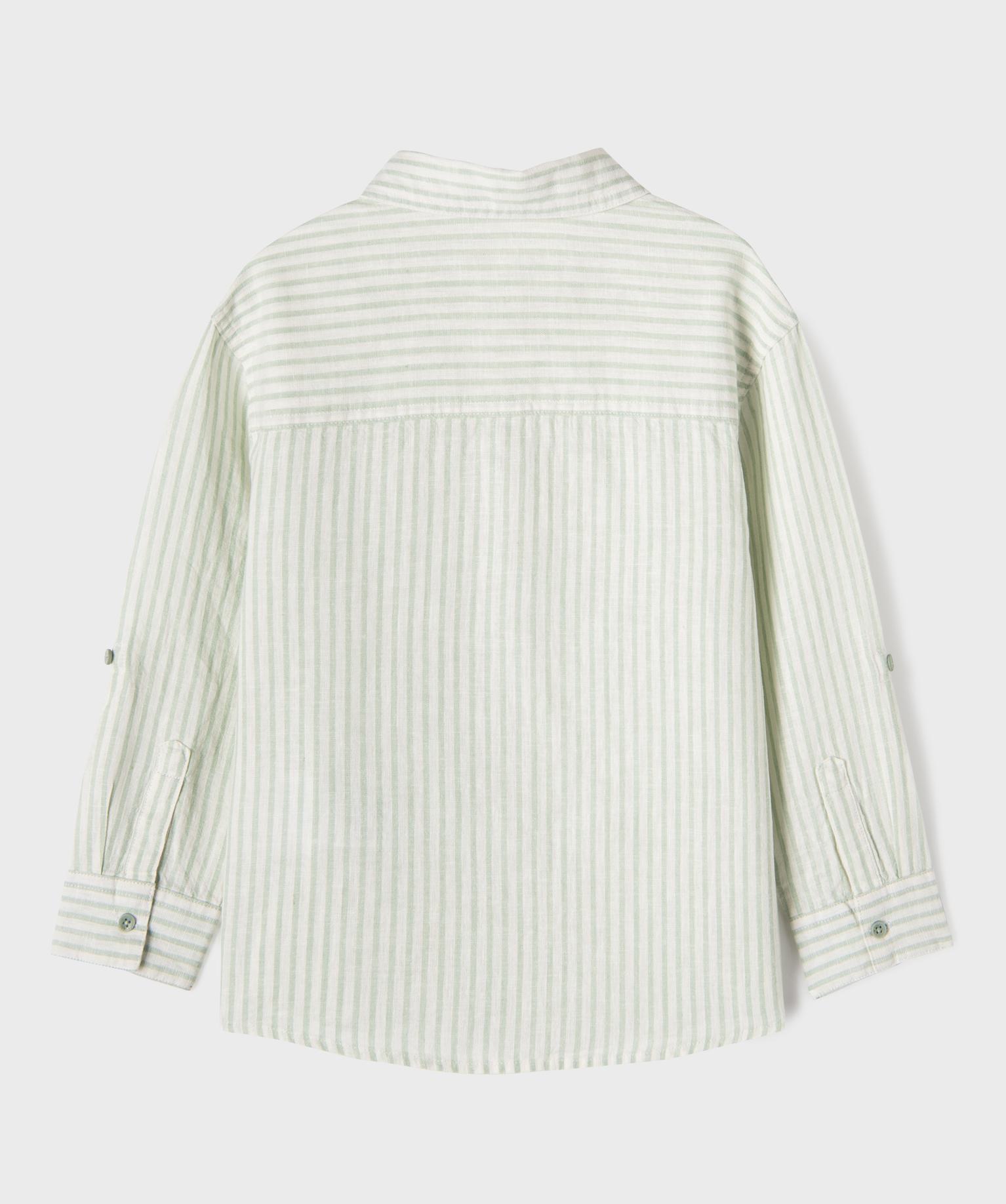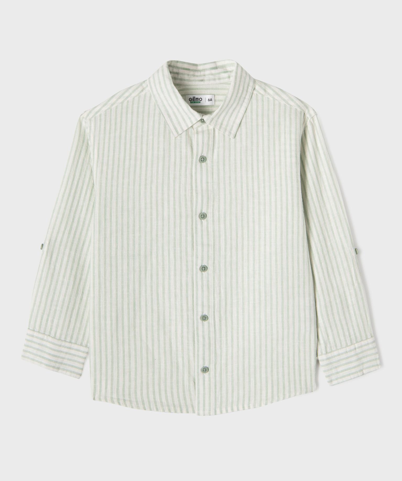 Chemise manches longues en mélange coton-lin rayé garçon vert