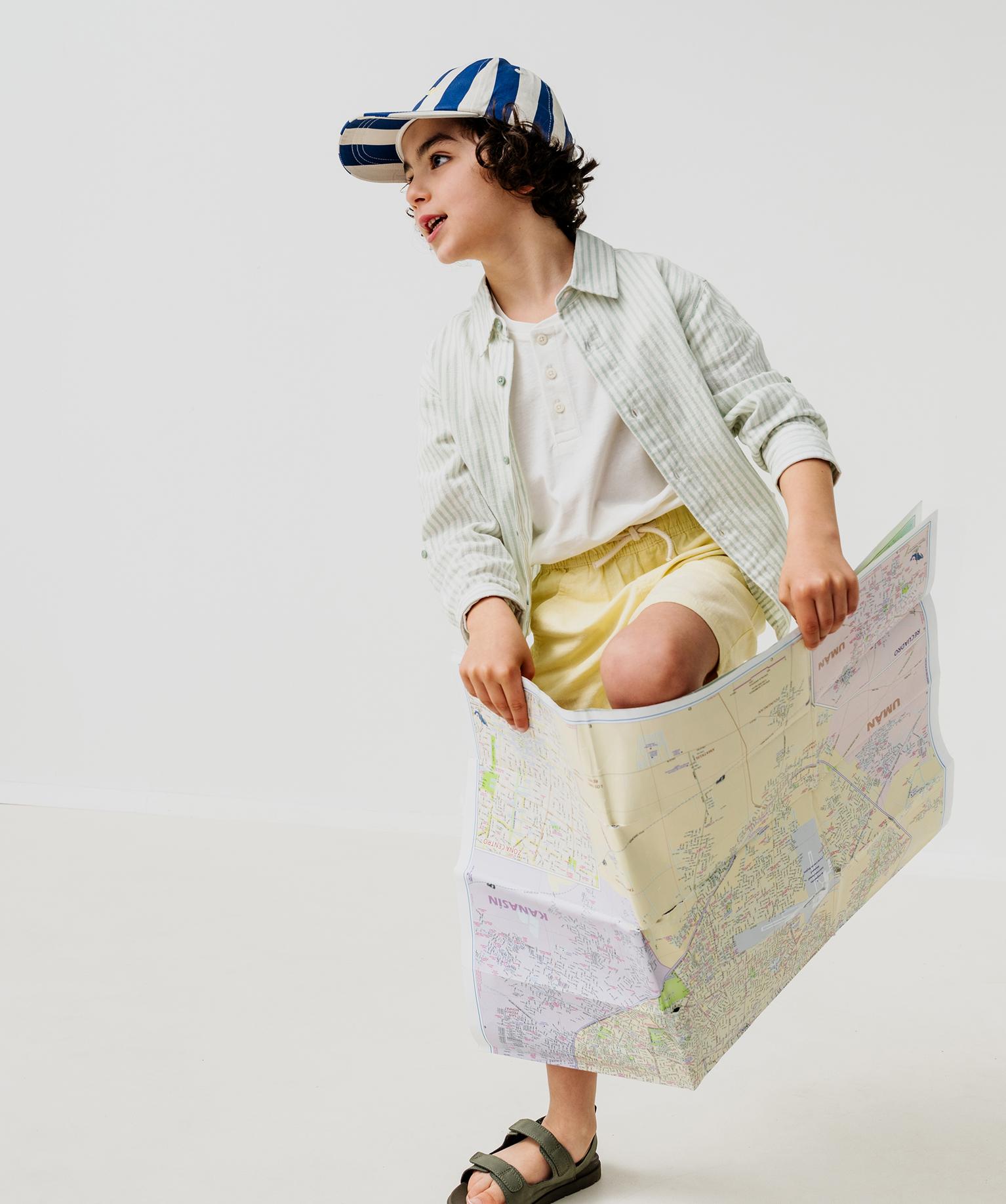 Chic, légère et intemporelle, la chemise rayée en lin et coton signe son grand retour. On aime la fraicheur de son coloris et son atout malin : des pattes de boutonnage pour maintenir les manches longues retroussées. De quoi changer de style en un clin d'œil. La chemise garçon présente un design classique avec col souple, coupe droite, base arrondie, fermeture sur toute la longueur. À porter avec le bermuda assorti ou ouverte sur un tee-shirt uni avec un short en jean.