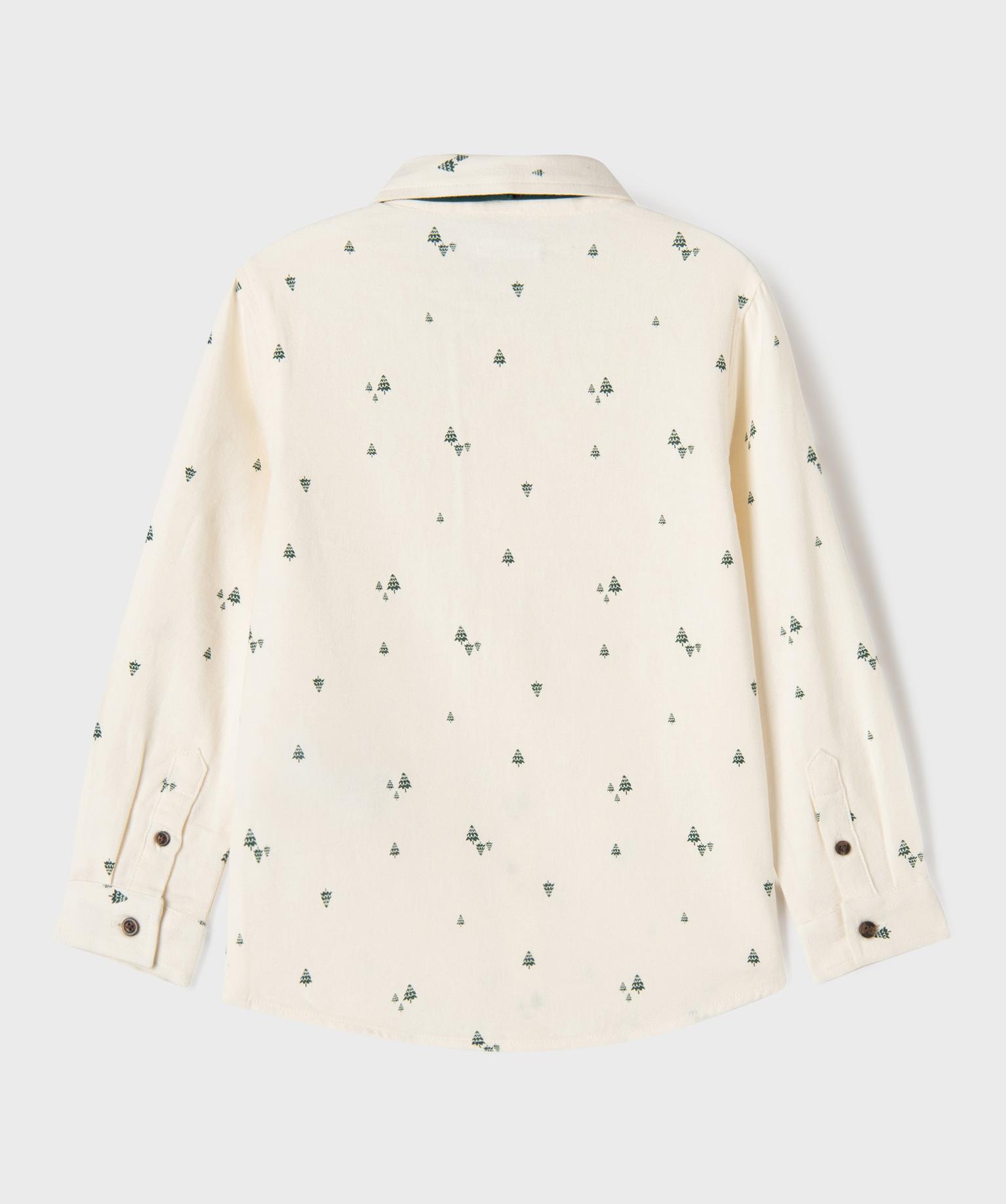 Chemise manches longues imprimée avec nœud papillon garçon ecru