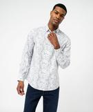Élégante chemise homme en coton imprimé. Une chemise à manches longues et coupe droite qui apportera un touche d'originalité raffinée à vos pantalons unis. La chemise possède un col classique avec baleines souples intégrées pour un bon maintien, une fermeture boutonnée et une base arrondie. Les poignets carrés, doublés d'un tissu uni, se règle sur deux largeurs grâce à des boutons.