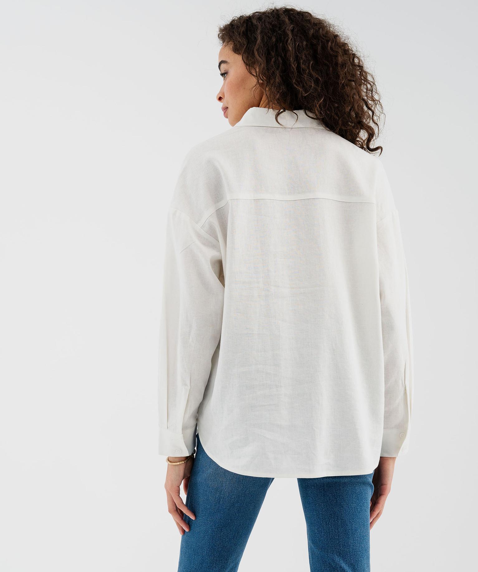 Avec sa couleur claire lumineuse et sa matière élégante, cette chemise femme sera la carte secrète de vos tenues : avec un tailleur, comme nouée sur une robe moulante, elle vous accompagnera partout. Sa coupe droite assez large avec une base arrondie vous permet de la porter aussi bien fermée qu'ouverte, rentrée dans le bas ou sortie en version tunique. Son col classique et ses manches longues lui assurent beaucoup d'élégance. La chemise présente une poche plaquée à la poitrine.