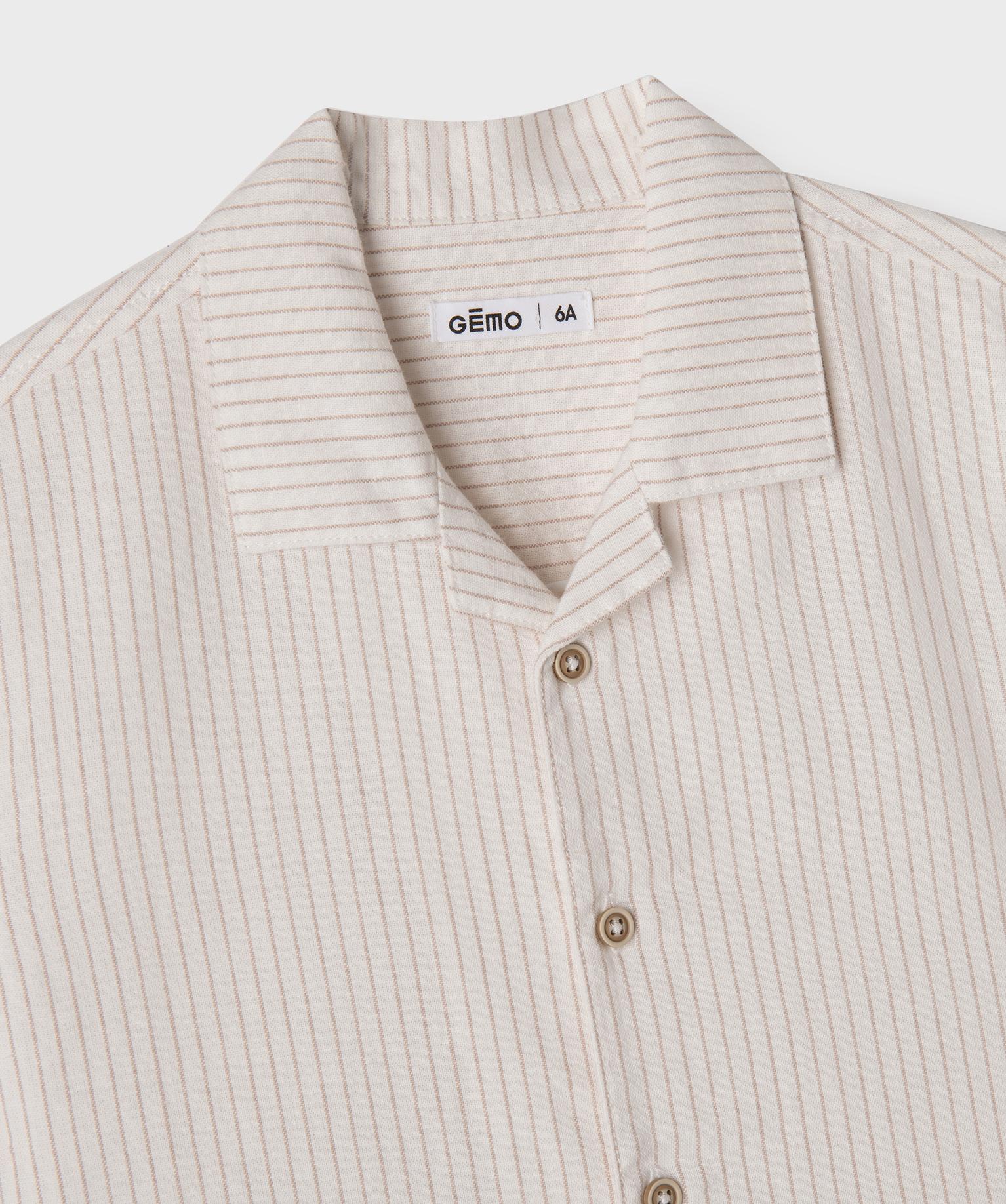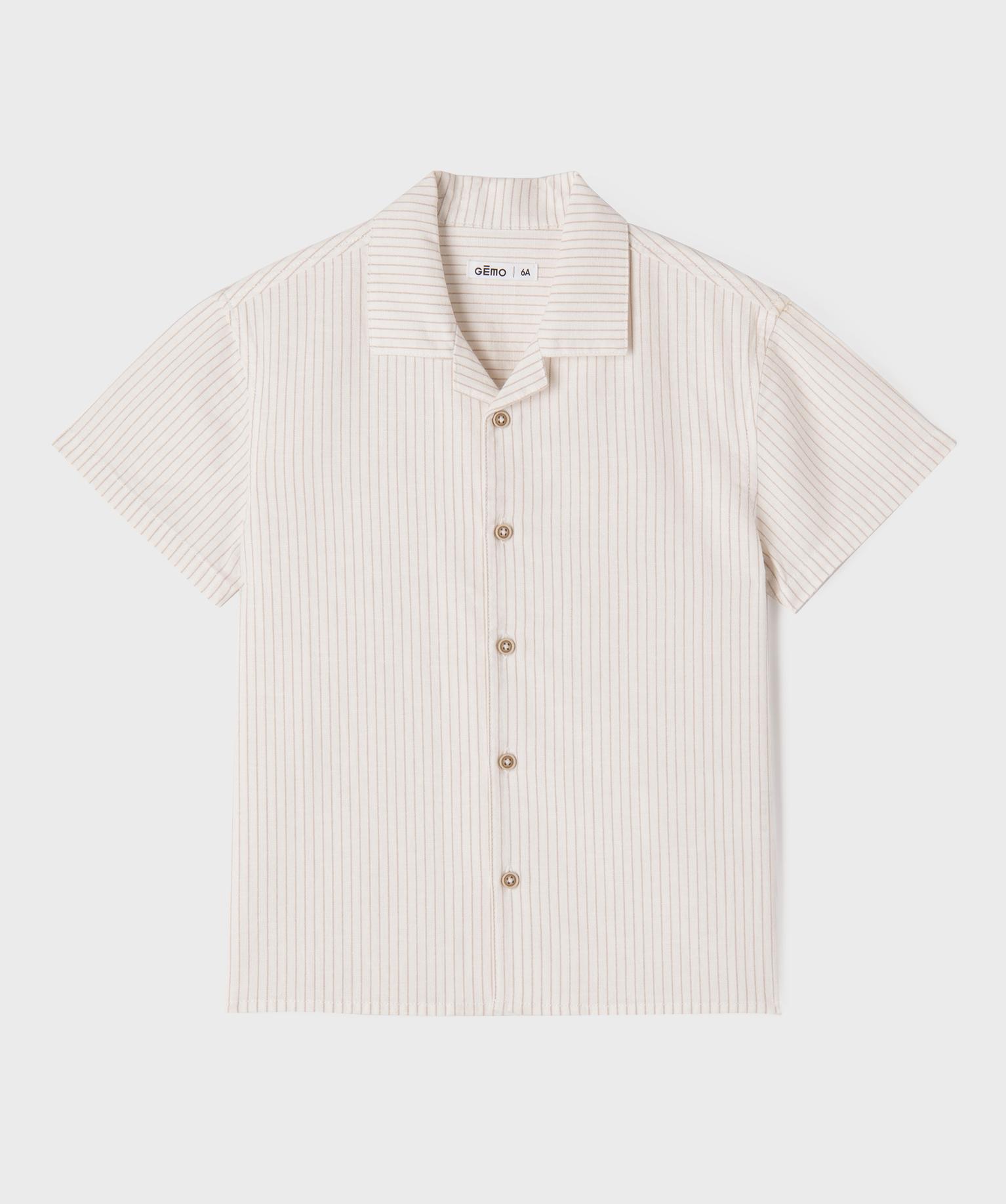 Chemise rayée à manches courtes en lin et coton garçon ecru